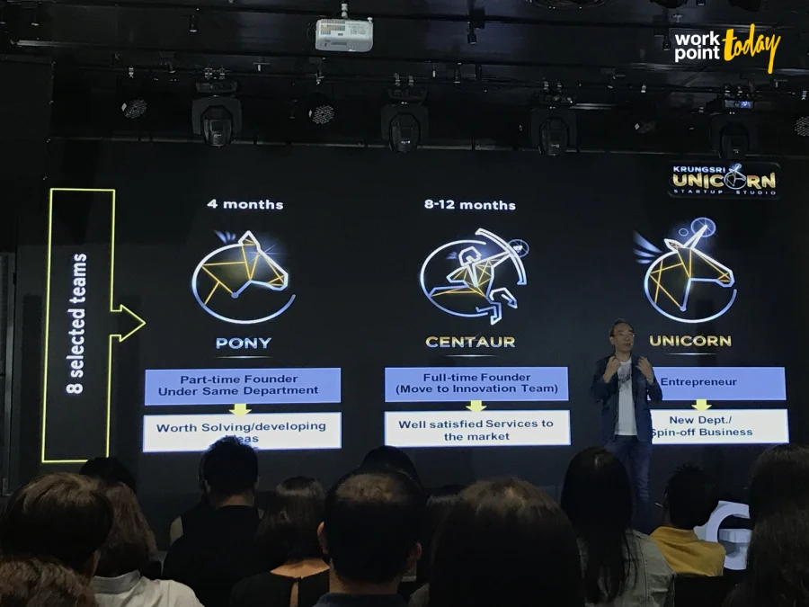 นอกจากนี้ กรุงศรี คอนซูมเมอร์ ยังหันมาพัฒนาบุคลากรในรูปแบบ สตาร์ทอัพ ยูนิคอร์น โดยฝึกพนักงานให้ทำงานประจำ พร้อมกับคิดโปรเจกต์ใหม่เพื่อเป็นเจ้าของธุรกิจเองด้วย หากโปรเจกต์ผ่าน พนักงานก็จะได้เป็นเจ้าของธุรกิจนั้น โดยมีกรุงศรีฯ ถือหุ้น และให้เงินสนับสนุน ซึ่งที่ผ่านมาหลายๆ องค์กรก็หันมาใช้กลยุทธ์นี้กันบ้างแล้ว