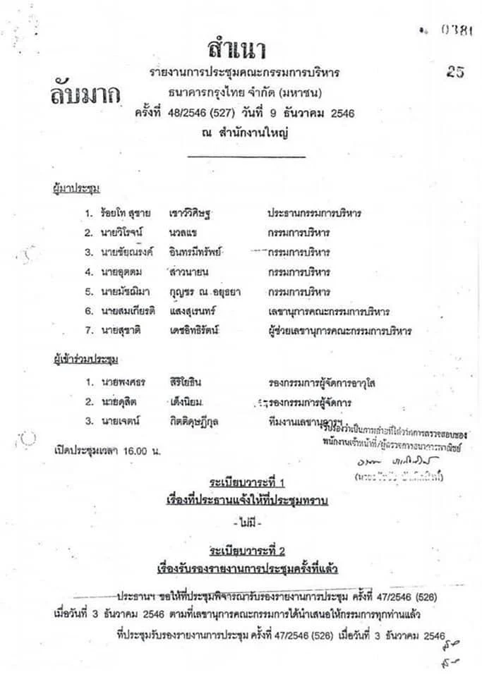 ส่วนพยานปากนายอุตตม สาวนายน กรรมการ ธ.กรุงไทย อีกคนได้ความเพียงว่า นายชัยณรงค์สอบถามก่อนประชุมว่า ร้อยโทสุชาย โทรศัพท์มาหาด้วยหรือไม่ นายอุตตมตอบว่าไม่ได้โทรมา ดังนั้นการอนุมัติสินเชื่อให้จำเลย 19 ของนายอุตตม จึงไม่ได้เกิดจากการโน้มน้าวของ ร้อยโทสุชาย โดยอ้างคำสั่งจากนายทักษิณ