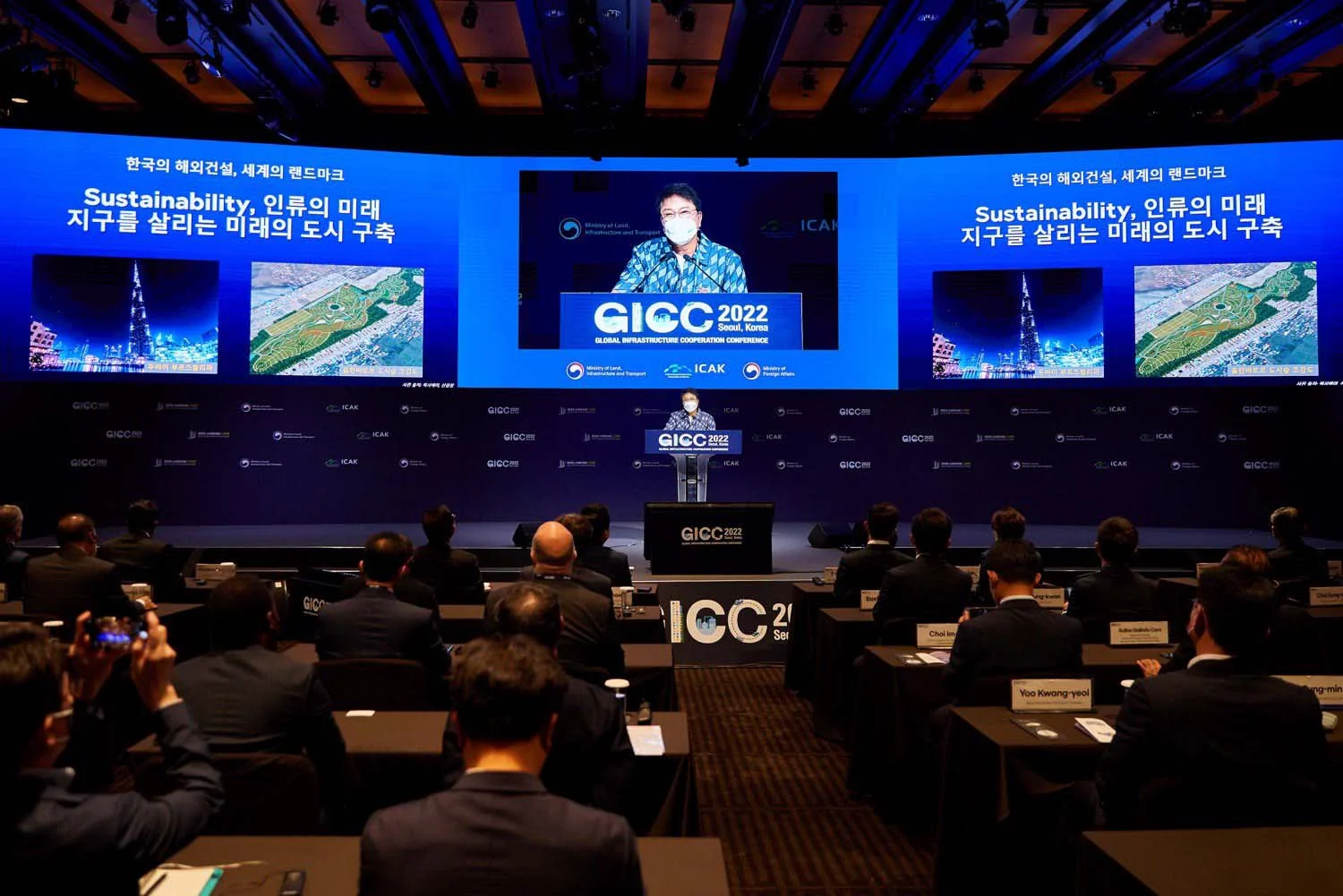 โปรดิวเซอร์ ‘ซูมาน ลี’ ถ่ายทอดสุนทรพจน์หัวข้อ ‘อนาคตของ K-Construction’ ในงาน GICC ที่จัดโดยกระทรวงที่ดิน โครงสร้างพื้นฐาน และการขนส่ง “เกาหลีใต้เป็นประเทศแห่งมนุษยธรรมและความคิดสร้างสรรค์ ผมหวังว่าเกาหลีใต้จะสามารถสร้างเมืองแห่งอนาคต ด้วยมนุษยธรรมและความยั่งยืนได้”