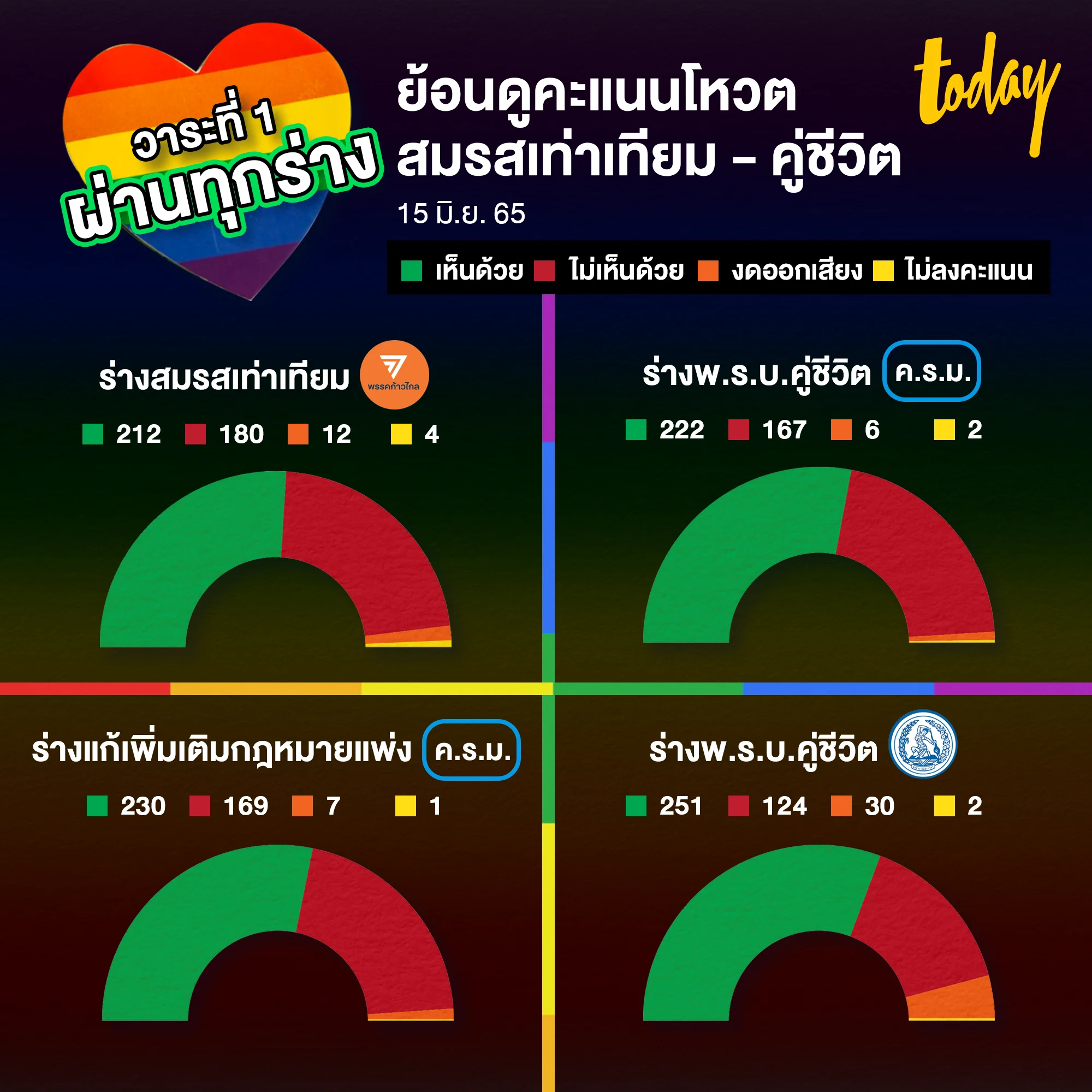 ย้อนดูการลงคะแนนเสียงของสภาผู้แทนราษฎรต่อร่างกฎหมายสมรสเท่าเทียม-พ.ร.บ.คู่ชีวิต เมื่อวันที่ 16 มิถุนายน 2565