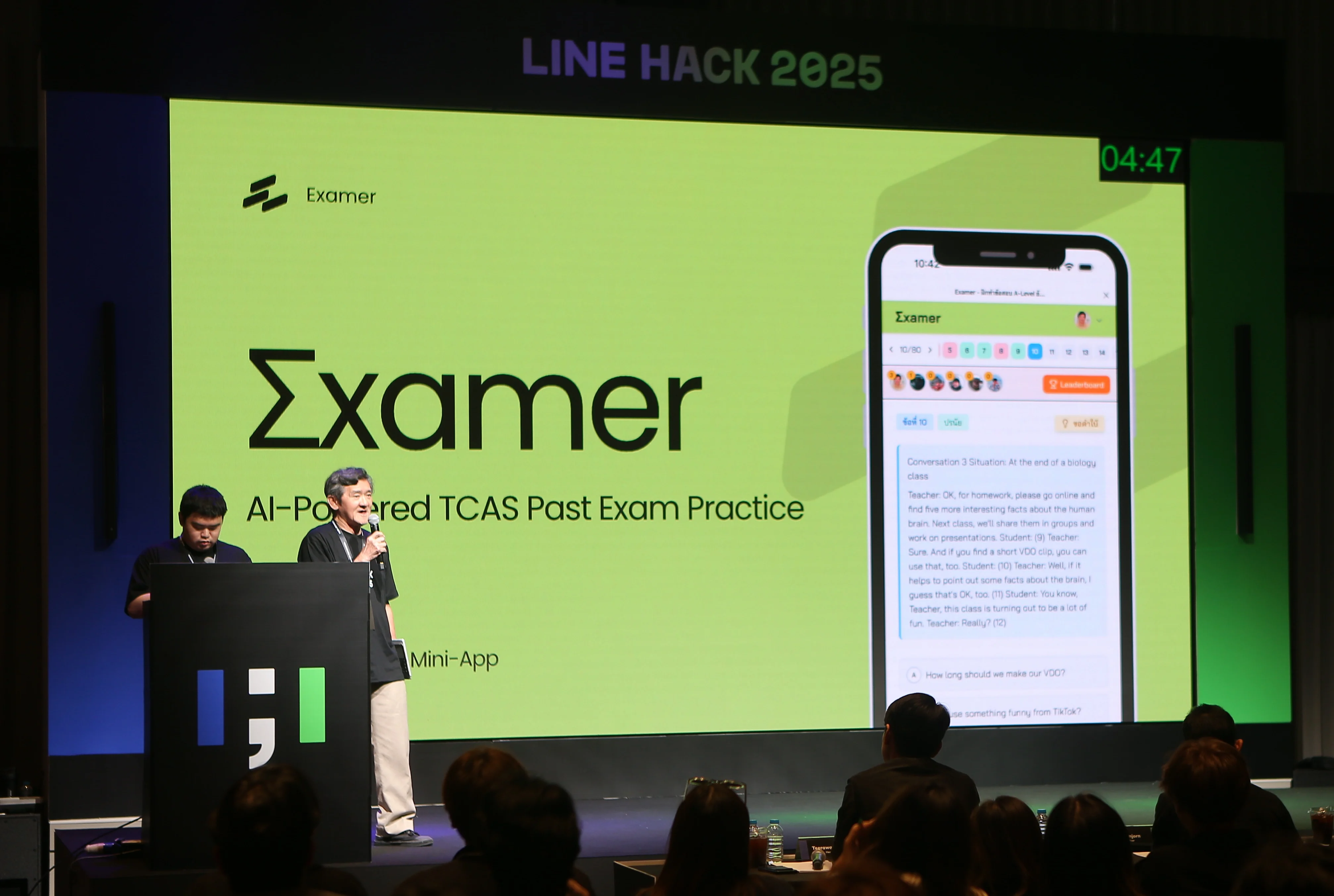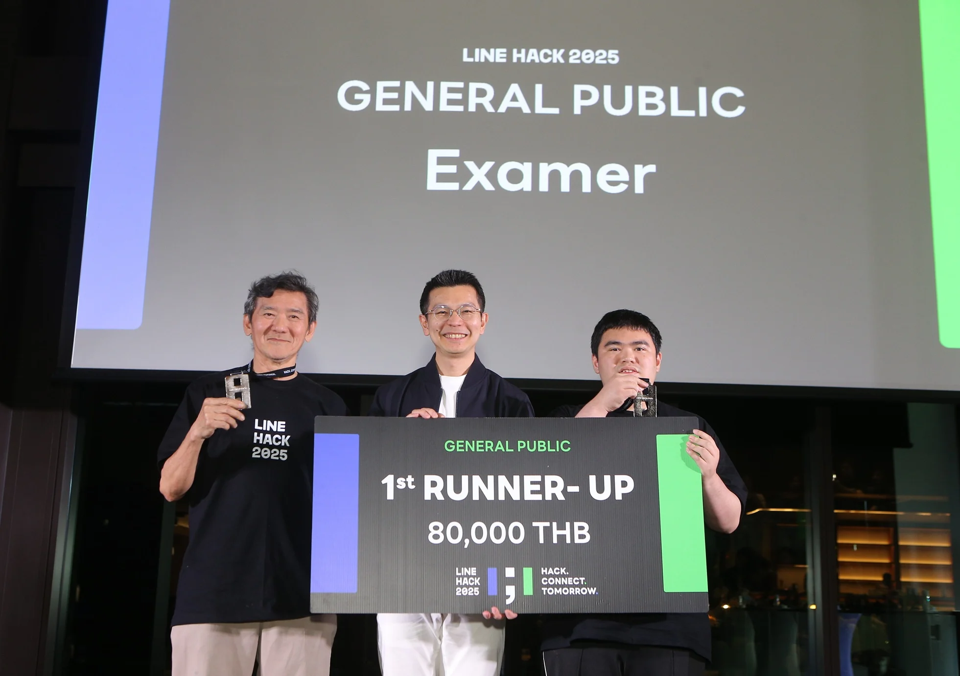 รางวัลรองชนะเลิศอันดับ 1 ได้แก่ทีม “Examer” จากผลงาน Examer แพลตฟอร์มฝึกทำข้อสอบ TCAS ผ่าน LINE MINI App โดยรวบรวมข้อสอบจริงย้อนหลังไว้ และใช้ AI มาช่วยวิเคราะห์ เพื่อใบ้คำตอบ ตรวจสอบและเฉลยพร้อมคำอธิบาย ไปจนถึงวิเคราะห์จุดอ่อนของผู้ทำแบบทดสอบให้ พร้อมฟังก์ชัน Leaderboard โชว์ผลคะแนนในกลุ่มผู้ใช้สร้างแรงจูงใจในการฝึกทำข้อสอบประชันฝีมือไปในตัว