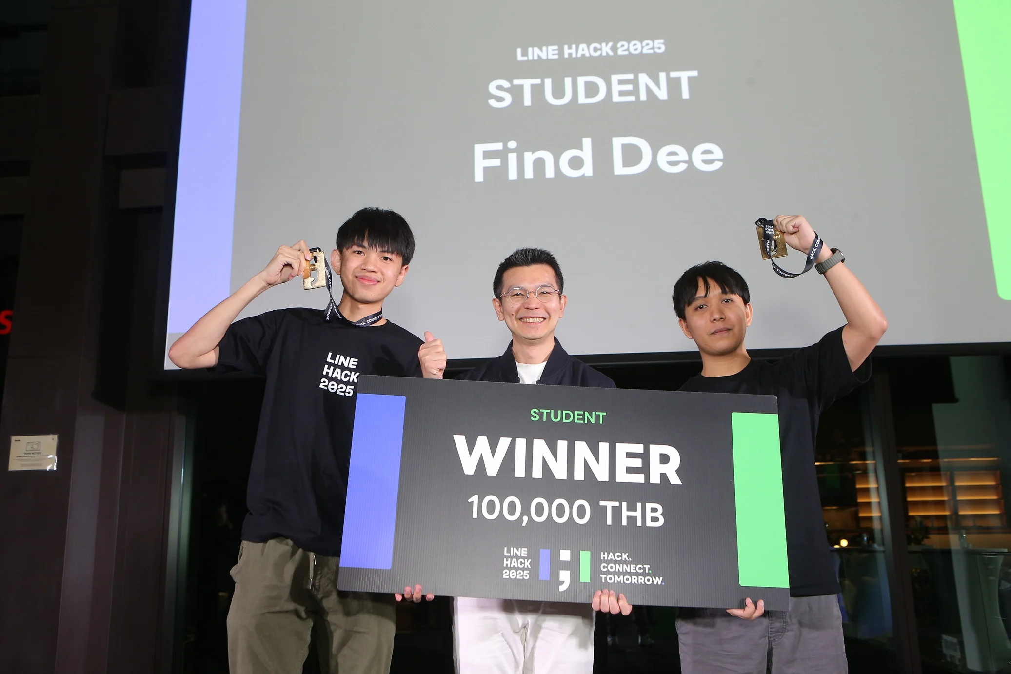 รางวัลชนะเลิศ ได้แก่ทีม “Find Dee” จากสถาบันเทคโนโลยีพระจอมเกล้าเจ้าคุณทหารลาดกระบัง ด้วยผลงาน ‘Find-Dee’ ผู้ช่วยจัดการไฟล์อัจฉริยะในกลุ่ม LINE แก้ปัญหาการค้นหาไฟล์สื่อการเรียนที่จำเป็นไม่เจอใน LINE กลุ่ม ด้วย LINE MINI App ที่ทำหน้าที่เสมือนคลังไฟล์อัจฉริยะ รวมทุกไฟล์ไว้ในที่เดียวให้ พร้อมใช้ AI มาช่วยวิเคราะห์ เพื่อตั้งชื่อไฟล์ใหม่ จัดหมวดหมู่ให้ สะดวกต่อการค้นหาด้วยคีย์เวิร์ดในภายหลัง พร้อมฟังก์ชันแจ้งเตือนสมาชิกเมื่อมีการส่งไฟล์ใหม่ สมาชิกในกลุ่มสามารถตรวจสอบคอลเลกชันไฟล์ที่มีในกลุ่มได้ พร้อมเลือกแชร์ให้เพื่อนได้ทันที