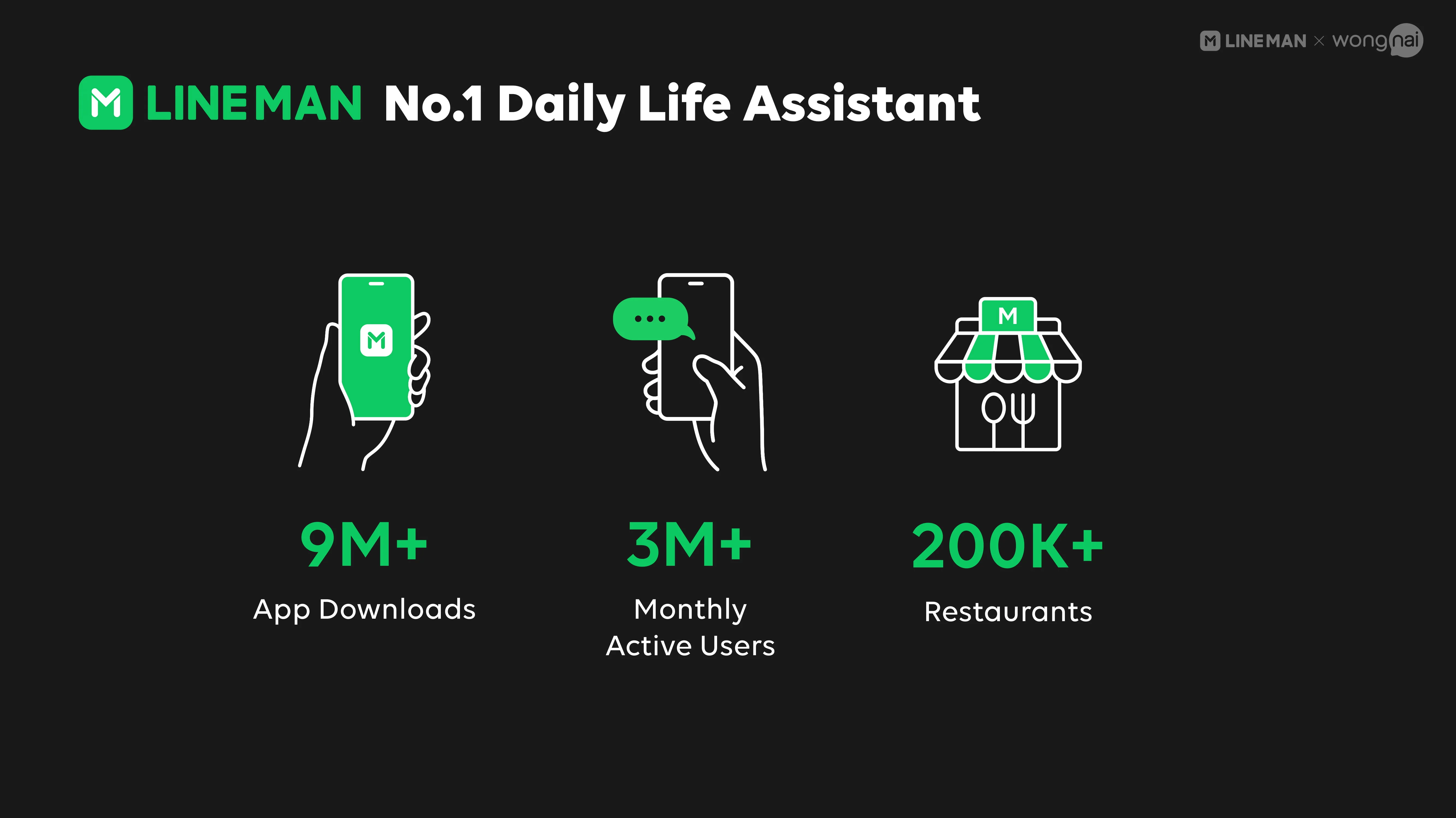 ในส่วนของแอปฯ LINE MAN มีการดาวน์โหลดกว่า 9 ล้านครั้ง และมีผู้ใช้งานต่อเดือนกว่า 3 ล้านบัญชี
