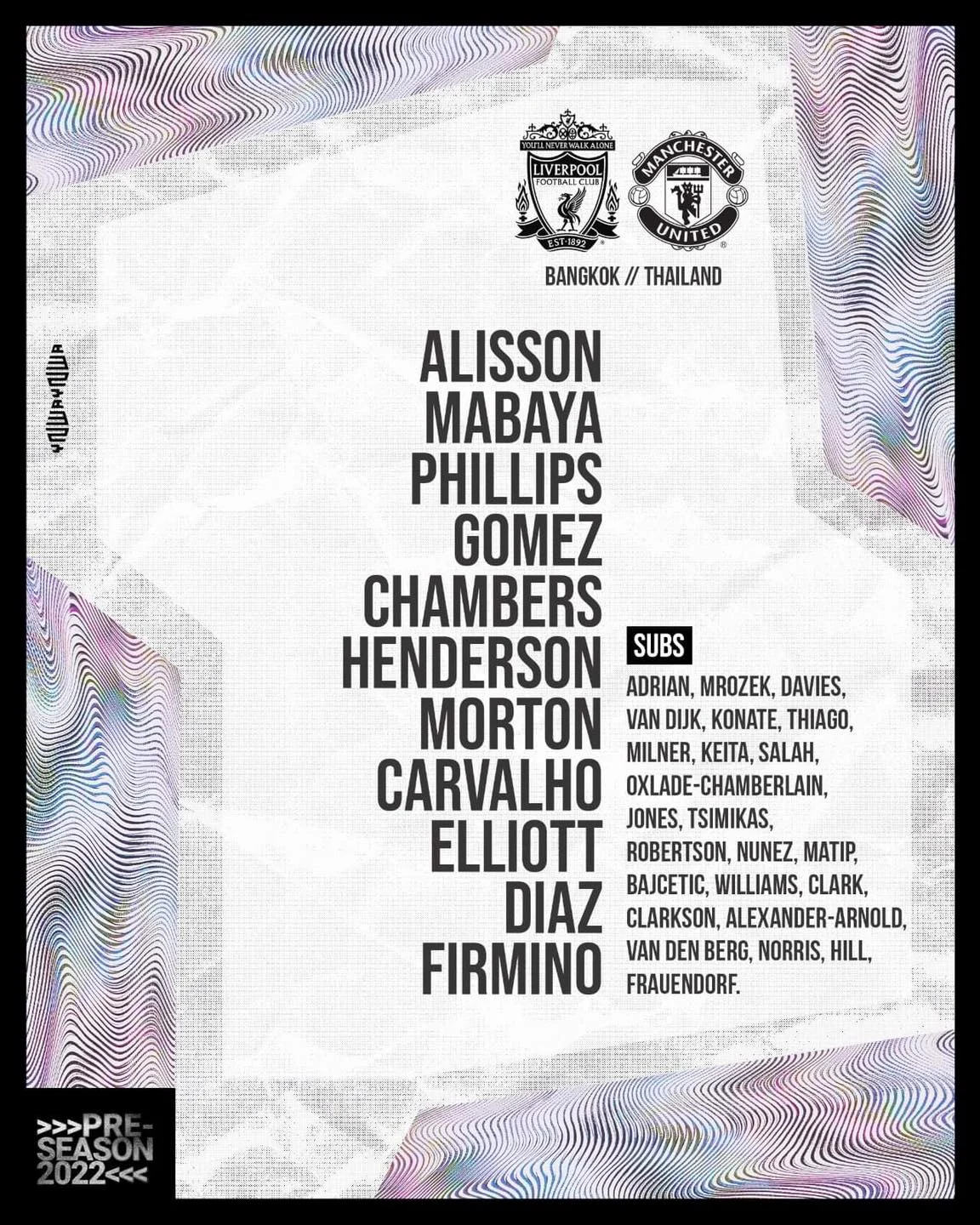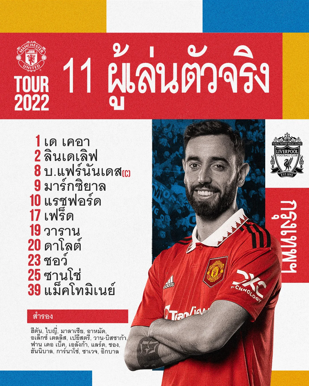 แมนยูเชสเตอร์ยูไนเต็ด และ ลิเวอร์พูล 2 ทีมฟุตบอลอังกฤษ ประกาศรายชื่อ 11 ผู้เล่นตัวจริง ในการแข่งขันฟุตบอล THE MATCH Bangkok Century Cup 2022 ที่กำลังจะลงดวลแข้ง ในเวลา 2 ทุ่ม ค่ำนี้ ที่ราชมังคลากีฬาสถาน