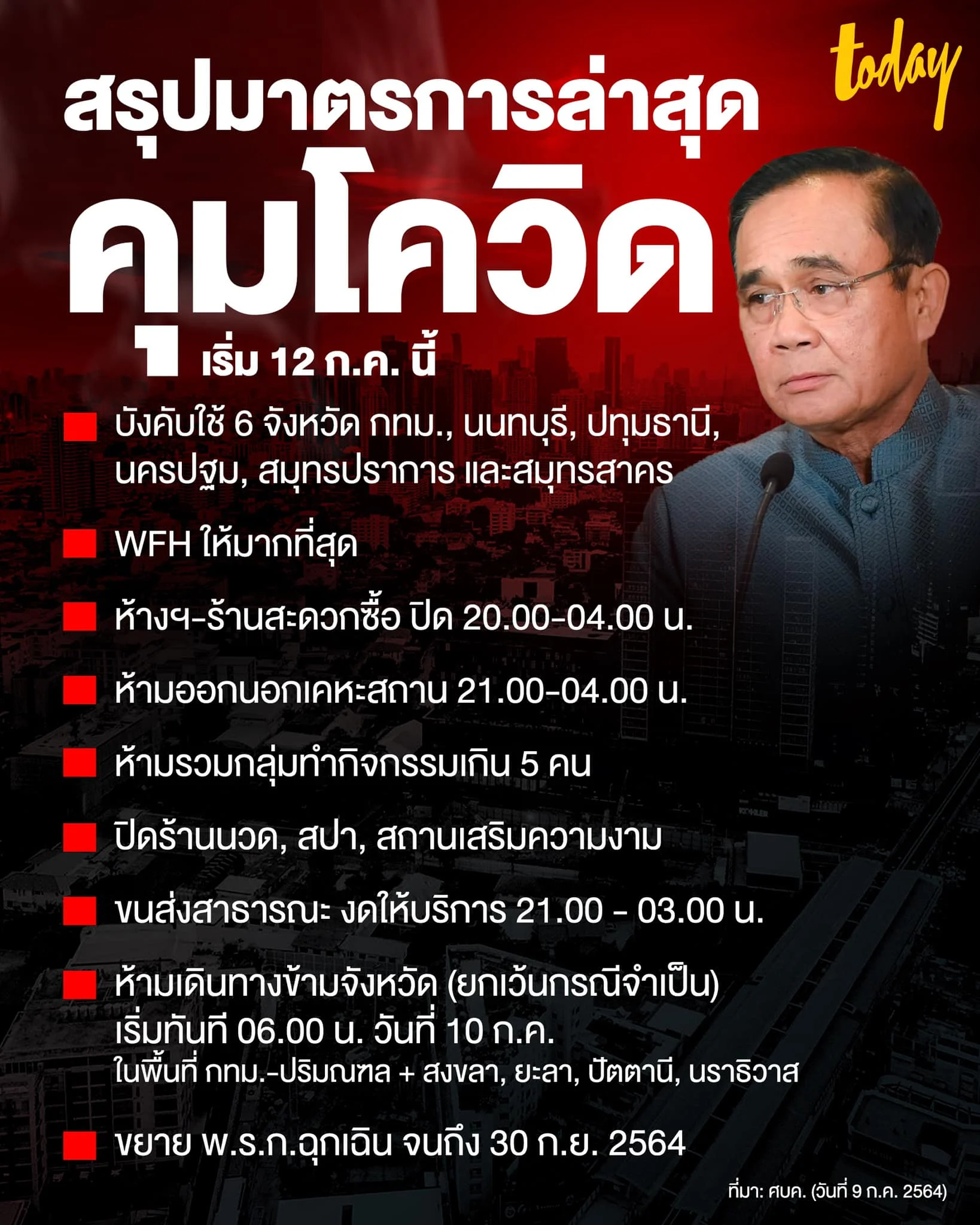 – ระยะเวลาที่มีผลบังคับใช้ : ตั้งแต่ 12 ก.ค.64 เป็นต้นไป ระยะเวลาอย่างน้อย 14 วัน หรือจนกว่าสถานการณ์จะดีขึ้น