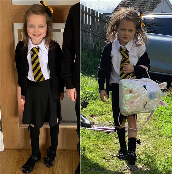 ภาพของหนูน้อยลูซี่ ชาวอังกฤษวัย 5 ขวบ เปรียบเทียบก่อนไปและหลังกลับจากโรงเรียน กลายเป็นภาพน่ารักๆ ที่มีคนแชร์ไปทั่ว