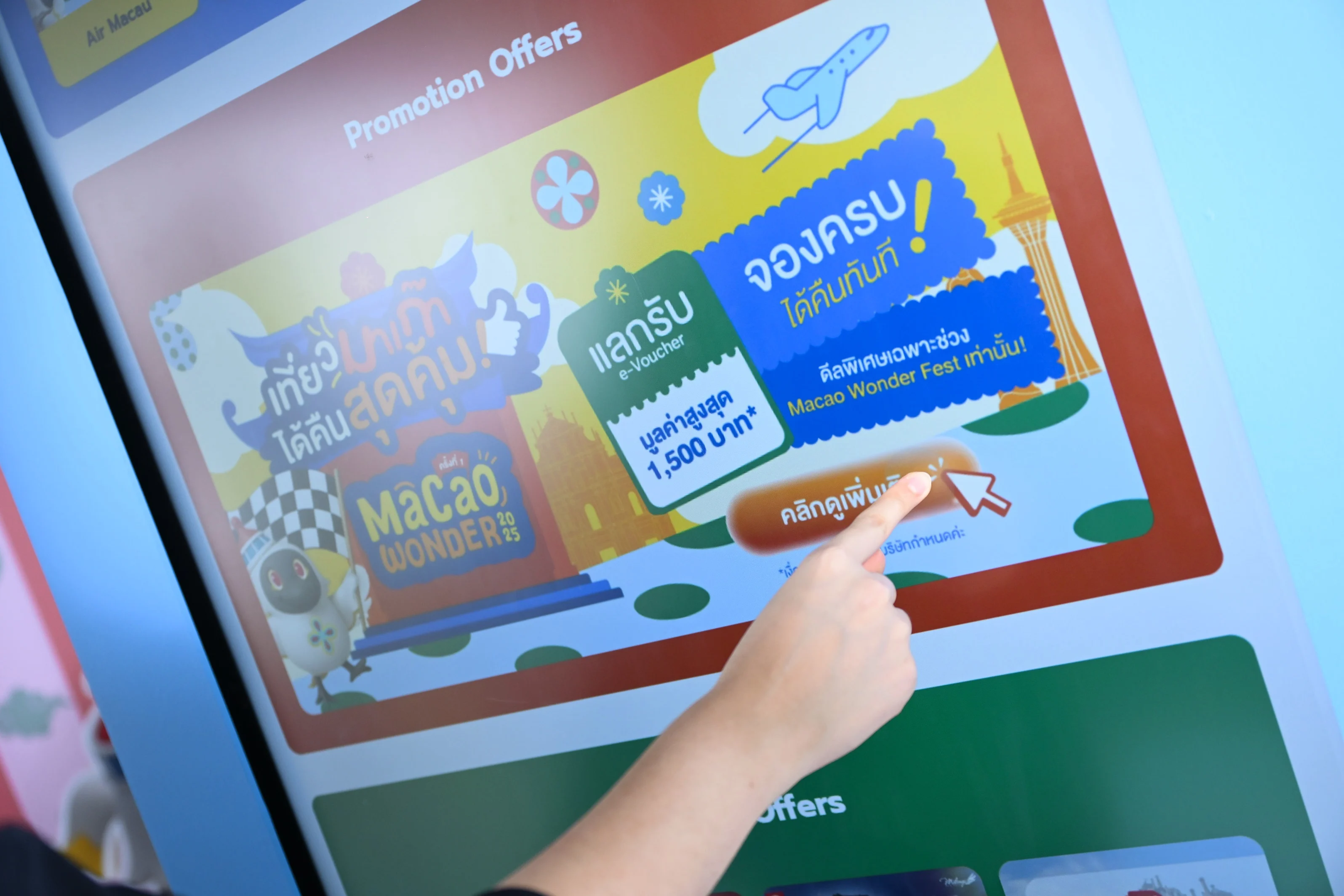 พาร์ทเนอร์ท่องเที่ยวชั้นนำ พร้อมจองแพ็กเกจได้ทันทีในงาน เอาใจแฟนตัวยง! รับ Voucher แทนเงินสด มูลค่า 500 บาท สำหรับผู้ที่ถือตั๋วเครื่องบินไป-กลับ กรุงเทพฯ-มาเก๊า ที่มีเที่ยวเดินทางตั้งแต่วันที่ 1 พฤศจิกายน ถึง
