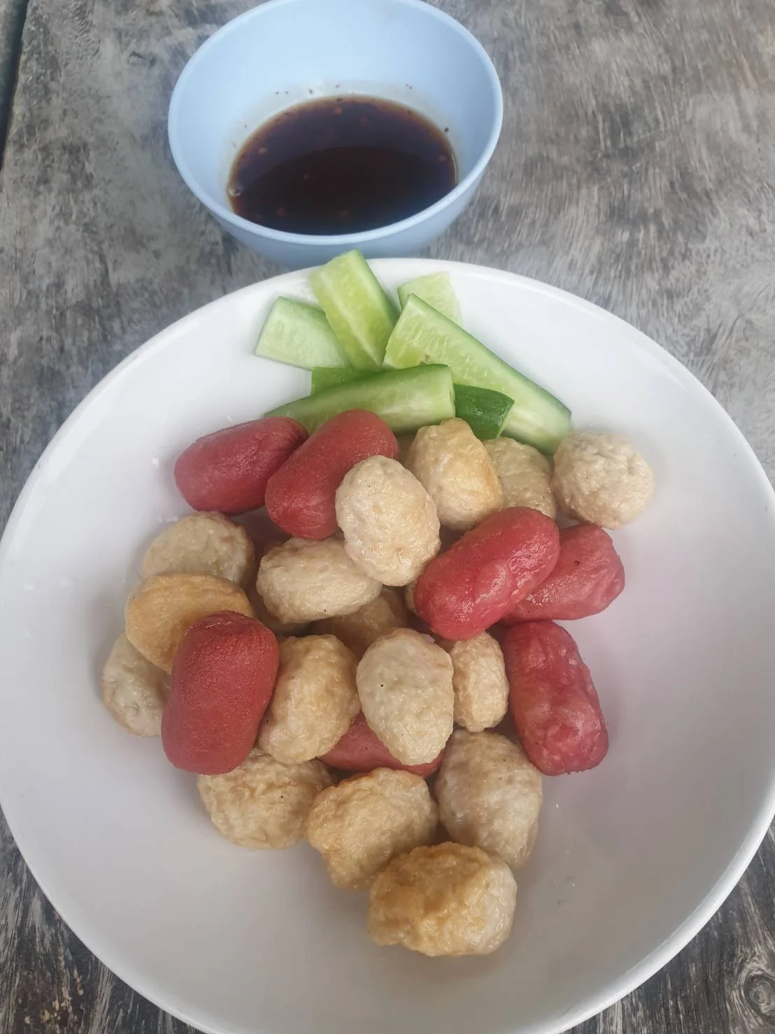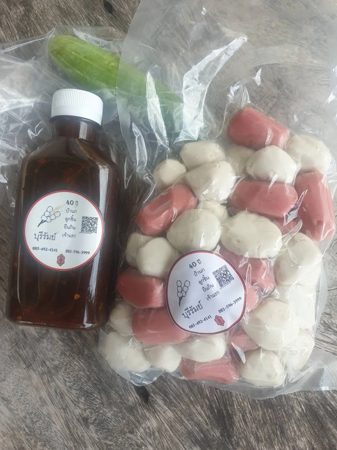 11 โมงกว่าๆ ในวันที่เดินทางไปเซอร์เวย์ ลูกชิ้นทอดแบบสดๆ ร้อนๆ 7 ไม้ 20 บาท ถูกซื้อและจับจองจนหมดแล้ว มีขายหน้าร้านเฉพาะลูกชิ้นที่ต้องนำกลับไปทอดเอง มีให้เลือกทั้งแบบลูกชิ้นหมูล้วน ไส้กรอก หรือแบบคละกัน พร้อมน้ำจิ้มน้ำพริกเผา 1 ขวดและแตงกวาผักเคียงเซทนี้ในราคา 150 บาท