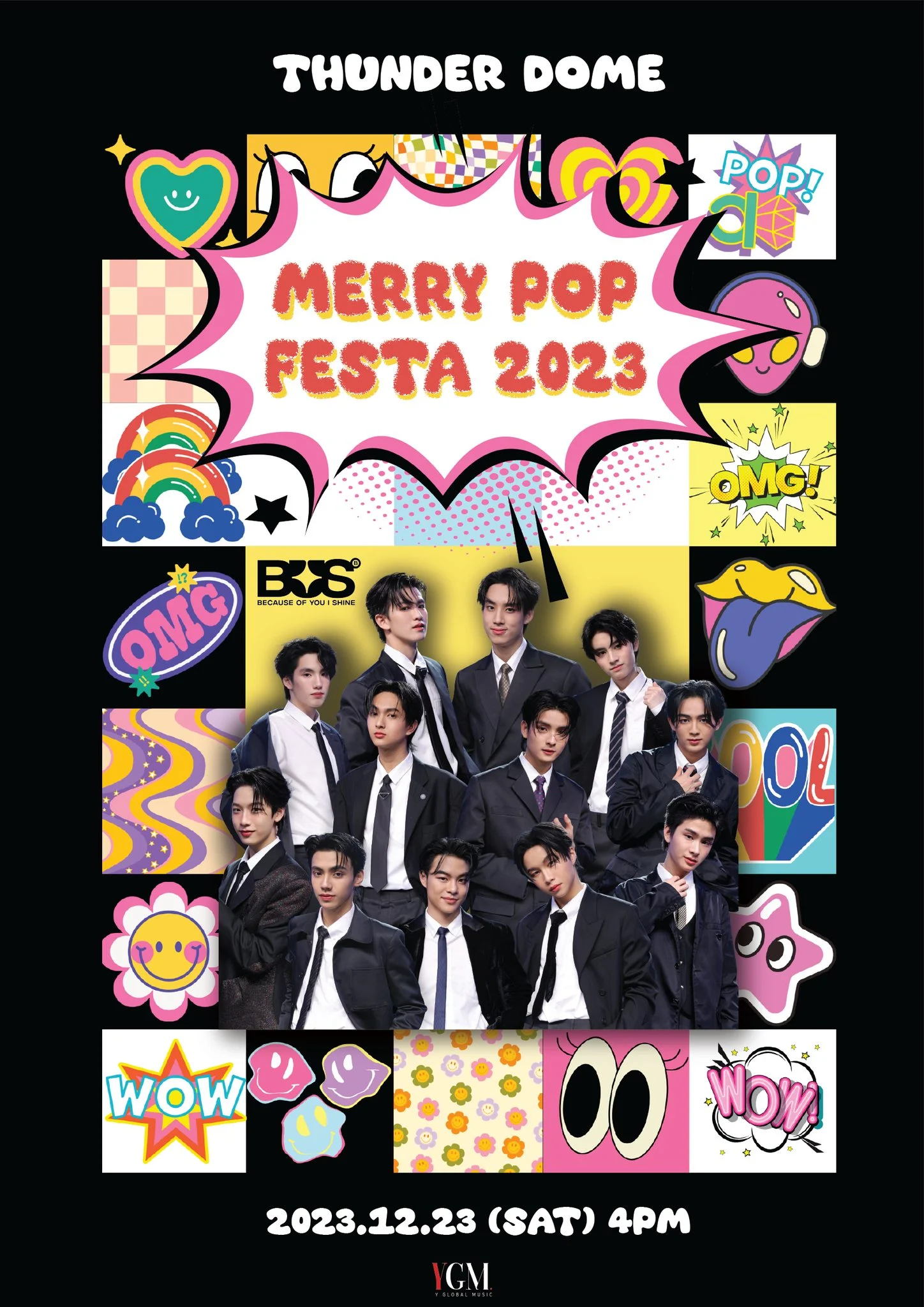 สำหรับงาน MERRY POP FESTA 2023 ทางผู้จัด YGLOBAL อยากให้เป็นคอนเสิร์ตที่แฟนๆ ชาวไทยของทั้ง 3 ศิลปินมาร่วมร้อง ร่วมเชียร์ และสนุกไปกับโชว์ทุกโชว์ และติดตามความพิเศษมากมายที่เหล่าศิลปินเตรียมขนมามอบให้กับแฟนๆ ทุกคน และไม่ใช่แค่ผู้จัด ทั้ง 3 ศิลปินไม่ว่าจะเป็น ฮันซึงอู, บังเยดัม และหนุ่มๆ วง บัส ทั้ง 12 คน ไม่ว่าจะเป็น อลัน-พศวีร์ ศรีอรุโณทัย, มาร์ค-กฤษณ์ กัญจนาทิพย์, ขุนพล-ปองพล ปัญญามิตร, ฮาร์ท-ชุติวัฒน์ จันเคน, จินวุค คิม, ไทย-ชญานนท์ ภาคฐิน, เน็กซ์-ณัฐกิตติ์ แช่มดารา, ภู-ธัชชัย ลิ้มปัญญากุล, คอปเปอร์-เดชาวัต พรเดชาพิพัฒ, เอเอ-อชิรกรณ์ สุวิทยะเสถียร, จั๋ง-ธีร์ บุญเสริมสุวงศ์ และ ภีม-วสุพล พรพนานุรักษ์ ก็เตรียมพร้อมที่จะมามอบความสุขผ่านโชว์ต่างๆ