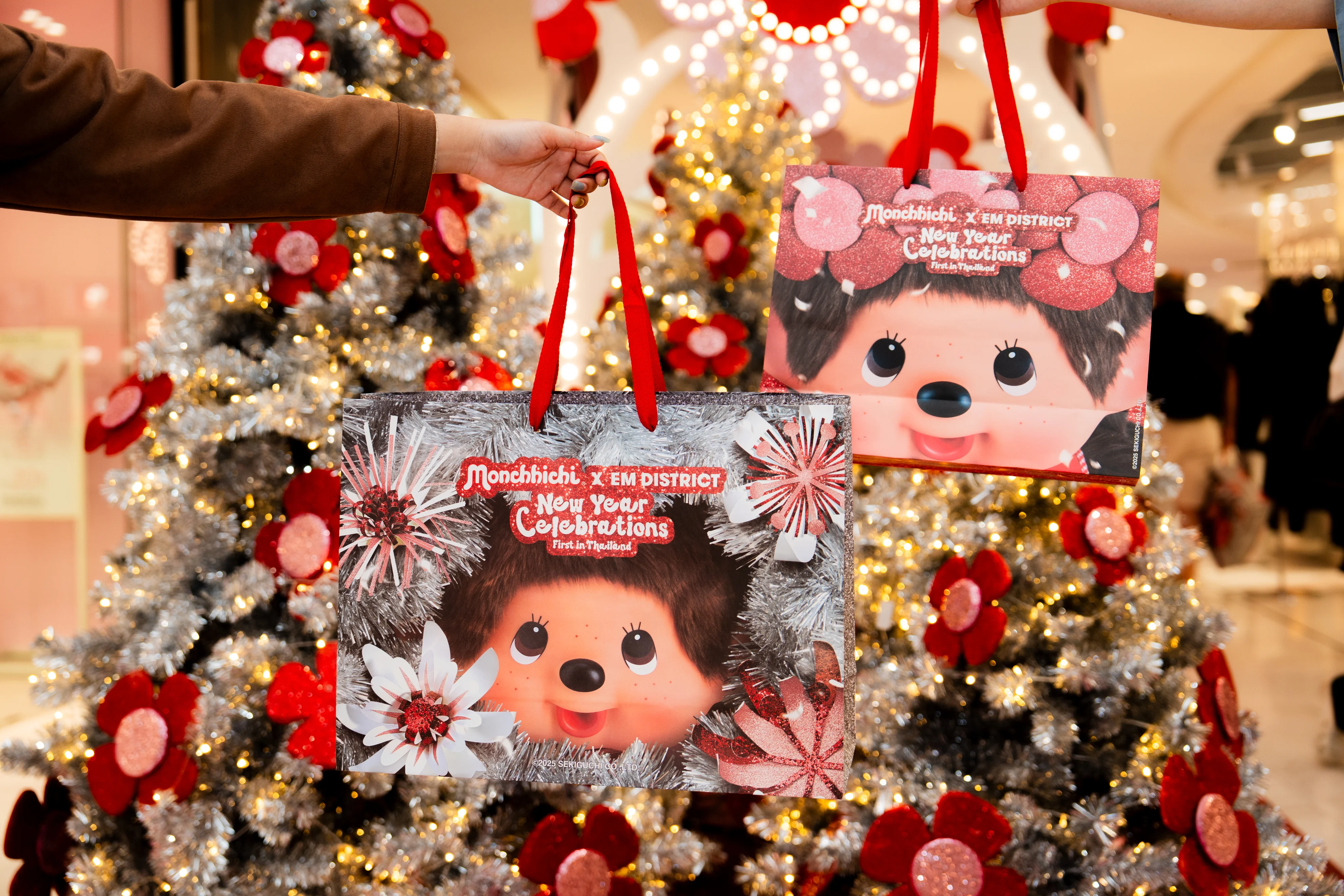 หนึ่งในเอกลักษณ์ของห้างฯในเดอะมอลล์ กรุ๊ป คือ บริการห่อของขวัญ ที่ถูกออกแบบมาเป็นพิเศษในปีนี้ ร่วมสร้างสรรค์ดีไซน์ผ่านการตีความทีมครีเอทีฟอาร์ตเดอะมอลล์ กรุ๊ป ร่วมกับ SEKIGUCHI โดยใช้เรื่องราวประสบการณ์การเดินทางของ Monchhichi ที่มาฉลองปีใหม่ที่ไทย โดยคอนเซปต์ในแต่ละห้างฯถูกถ่ายทอดผ่านการตกแต่งบรรยากาศที่ต่างกัน ตั้งแต่ Monchhichi Town ความสนุกสุดอบอุ่นที่หมู่บ้านคริสมาส ที่ The Mall Lifestore , Winter Wonderland โลกแฟนตาซีฤดูหนาวที่ EM DISTRICT, ไปจนถึงภาพวาดสีน้ำสุดอาร์ตภายใต้คอนเซ็ป Monchhichi Village ที่ Paragon