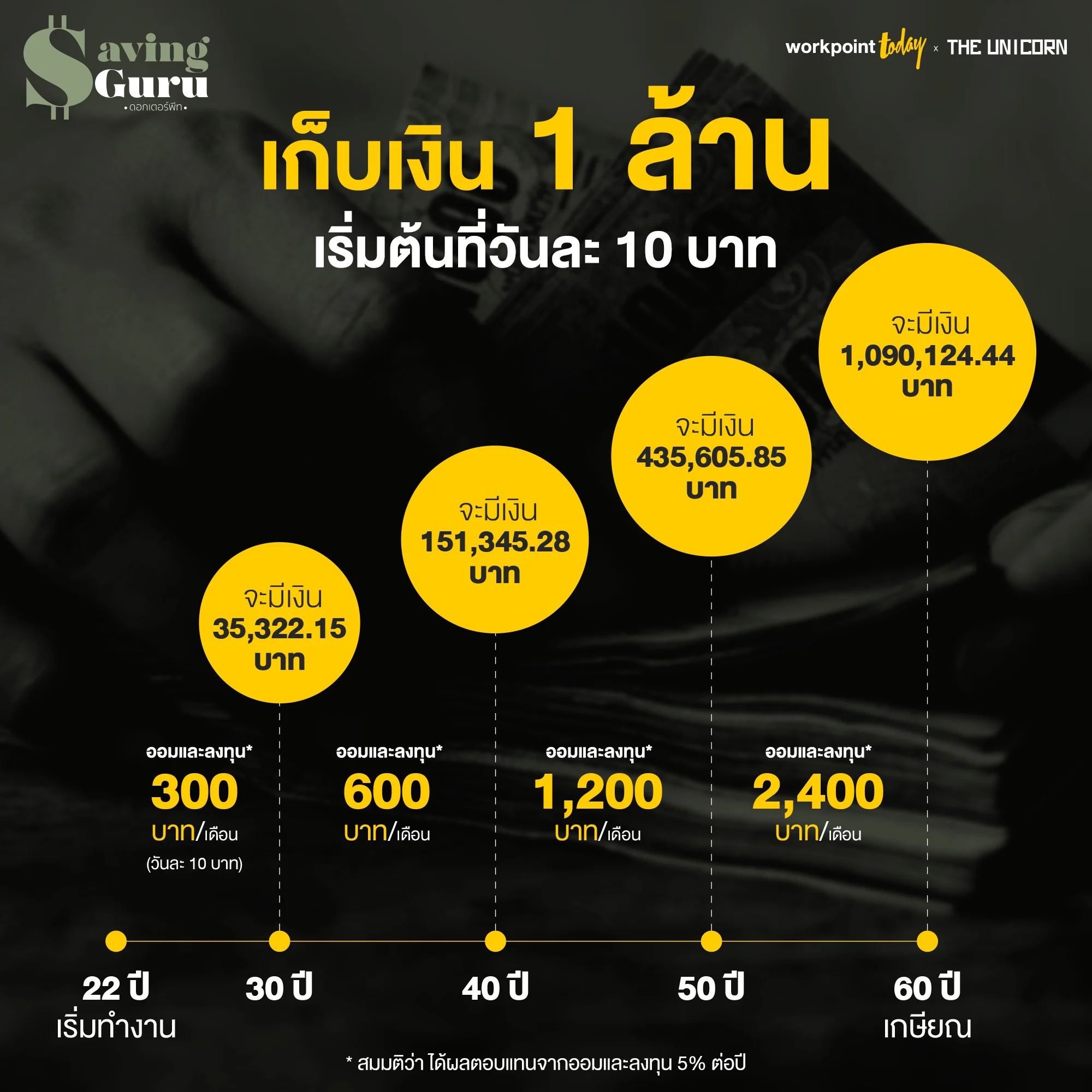 วันนี้ ในฐานะที่ผมมาประเดิมคอลัมน์ใหม่กับทาง workpoint TODAY เป็นตอนแรก ก็เลยอยากชวนผู้อ่านทุกคนมาลองตั้งเป้าหมายออมเงินให้ถึง 1,000,000 บาทกันครับ