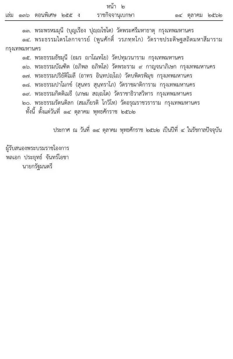 วันที่ 14 ตุลาคม 2562 เว็บไซต์ราชกิจจานุเบกษา เผยแพร่ประกาศ แต่งตั้งกรรมการมหาเถรสมาคม ความว่า
