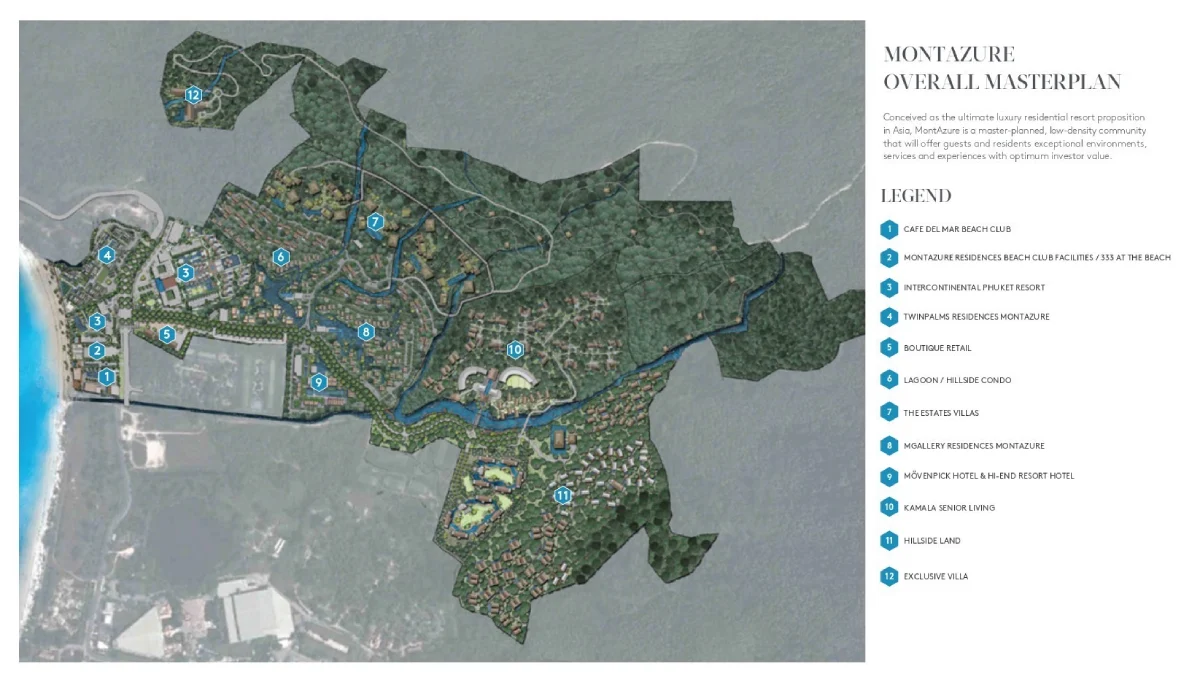 หนึ่งในโครงการหรูที่ถือว่าประสบความสำเร็จอย่างงดงามในตลาดอสังหาหรูบนภูเก็ต คือ มอนท์เอซัวร์ (MontAzure) โครงการมิกซ์ยูสระดับซูเปอร์ไฮเอนด์บนชายหาดกมลา ซึ่งเกิดจากความร่วมมือของกลุ่มพันธมิตรนักลงทุนและอสังหาริมทรัพย์ยักษ์ใหญ่แห่งเอเชียทั้ง 3 ฝ่าย ได้แก่ The Narai Group (จากประเทศไทย), ARCH Capital (จากฮ่องกง) และ Philean Capital (จากสิงคโปร์) ในเครือ Pontiac Land Group
