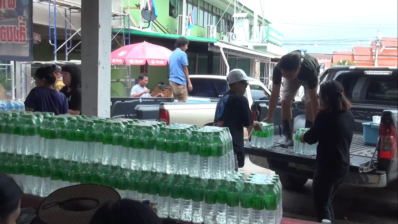 ส่วนชาวบ้านขาดอาหารและน้ำดื่ม ทางเจ้าหน้าที่ทั้งฝ่ายปกครอง เทศบาล และ อบต. เร่งบรรจุถุงยังชีพอาหาร-น้ำดื่ม ขนลงเรือแจกจ่ายชาวบ้านทุกหลังคาเรือน รวมไปถึงเทียนไขและไฟแช็ค เพื่อใช้จุดให้แสงสว่าง เนื่องจากพื้นที่น้ำท่วมสูงต้องตัดไฟเพื่อความปลอดภัย นอกจากนี้ก็ยังมีประชาชนจำนวนมากทยอยนำอาหารแห้ง น้ำดื่ม และเงินสดมาร่วมบริจาคช่วยเหลือผู้ประสบภัยด้วย