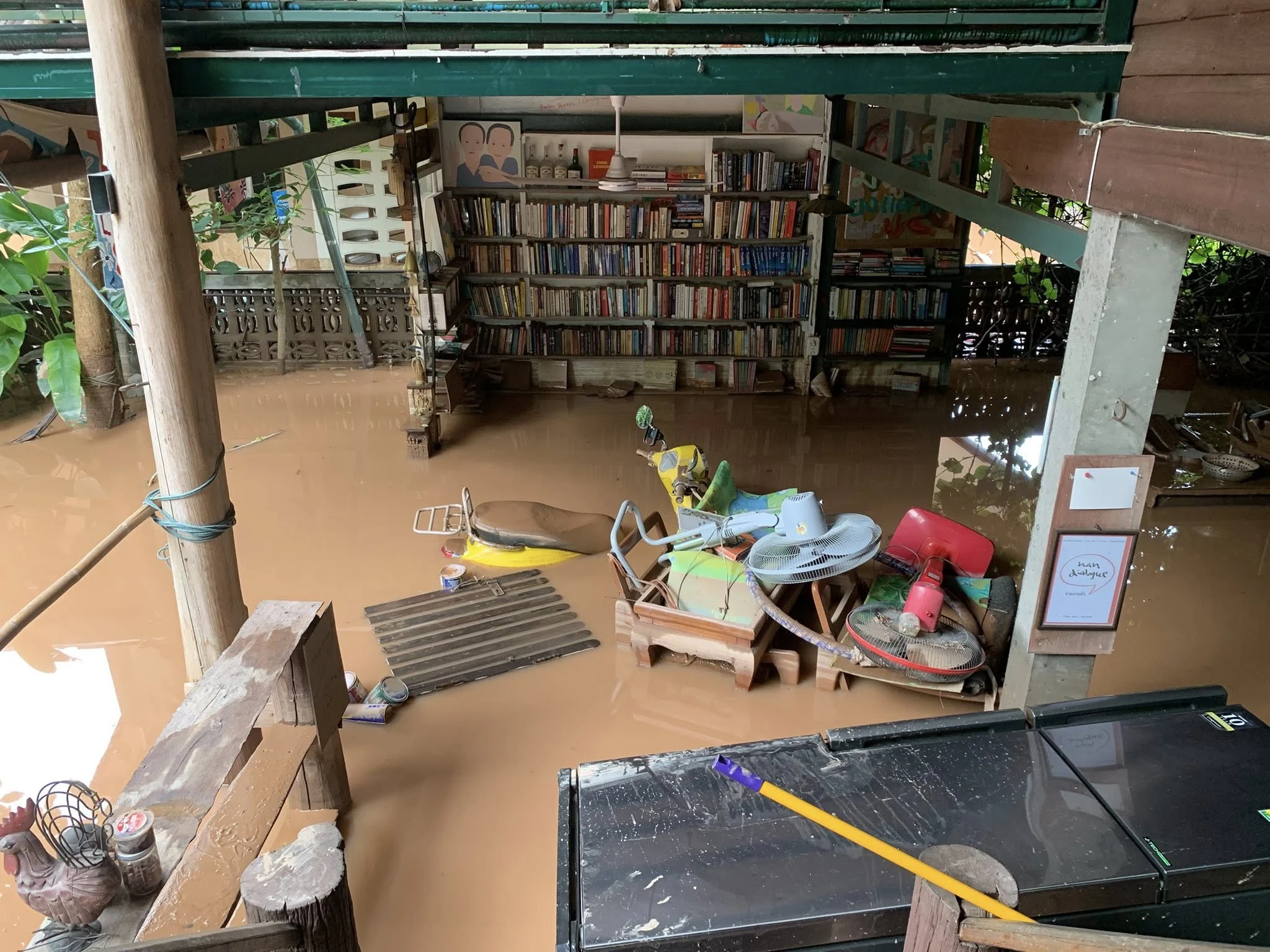 แม้หลังเกิดเหตุน้ำท่วม เพื่อนๆ กลุ่มร้านหนังสืออิสระจะติดต่อเข้ามาถามความช่วยเหลือ แต่ตอนนี้เธอต้องประเมินก่อนว่าความเสียหายเท่าไร แต่เท่าที่ดูก็น่าจะเกือบๆ 100%