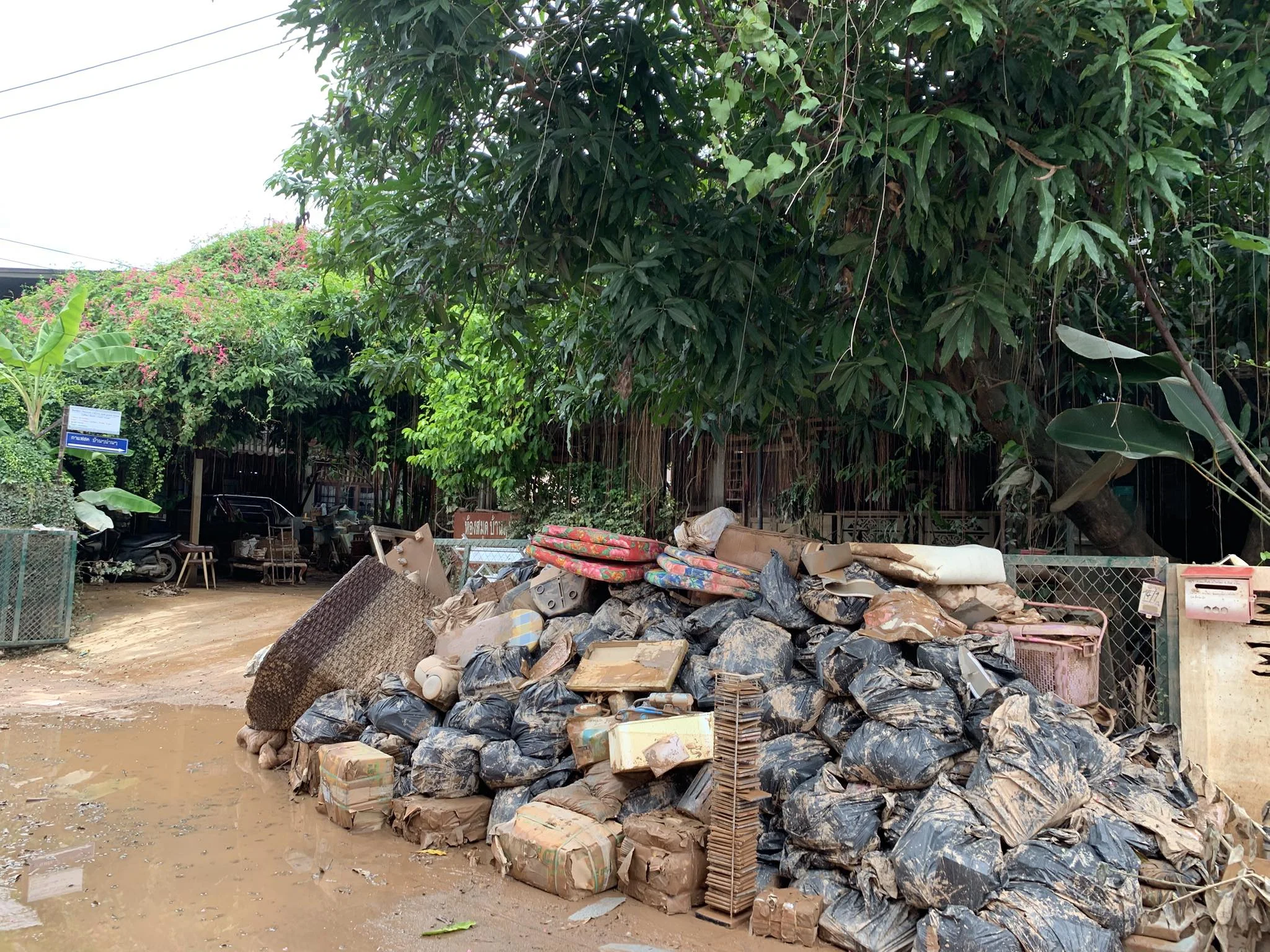 ภาพกองหนังสือจำนวนมหาศาลจมโคลน ซึ่งแต่ละเล่มก็หายากตามกาลเวลา เป็นภาพสะท้อนหนึ่งของความเสียหายจากอุทกภัยเมืองน่านครั้งนี้ ที่กระทบทรัพย์สินของพี่น้องประชาชน แต่จะทำอะไรได้ไปมากกว่าเร่งฟื้นฟู เช่นที่ครูต้อม โพสต์ภาพถุงขยะจำนวนมากที่ผ่านการเก็บซาก ออกจากห้องสมุดและบ้าน ด้วยข้อความที่ว่า “ทิ้ง ทิ้งกันไปฉันจะคงจะหลงลืมเธอสักวัน จากกันไปใช่ว่าไม่ร้าก”