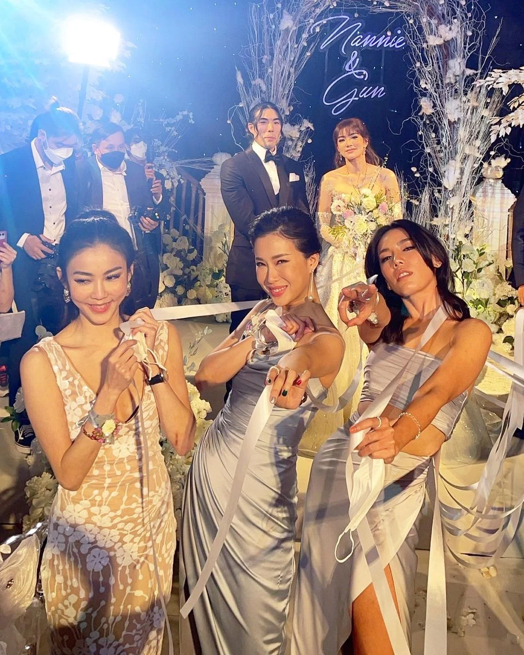 สำหรับบรรยากาศในงานแต่งงานของทั้งคู่จัดอย่างอบอุ่น และเรียบง่าย ท่ามกลางครอบครัวของทั้ง 2 ฝ่าย ร่วมเป็นสักขีพยาน และที่ขาดไม่ได้ก็คือ กิ๊บซ่า, กิ๊บซี่ และ เบลล์ 3 สาวซ่าจากวง ‘เกิร์ลลี่ เบอร์รี่’ ก็มาร่วมแสดงความยินดีทั้งในฐานะ ออกเรือนเป็นคนแรกของแก๊งค์ และ การเป็นว่าที่คุณแม่