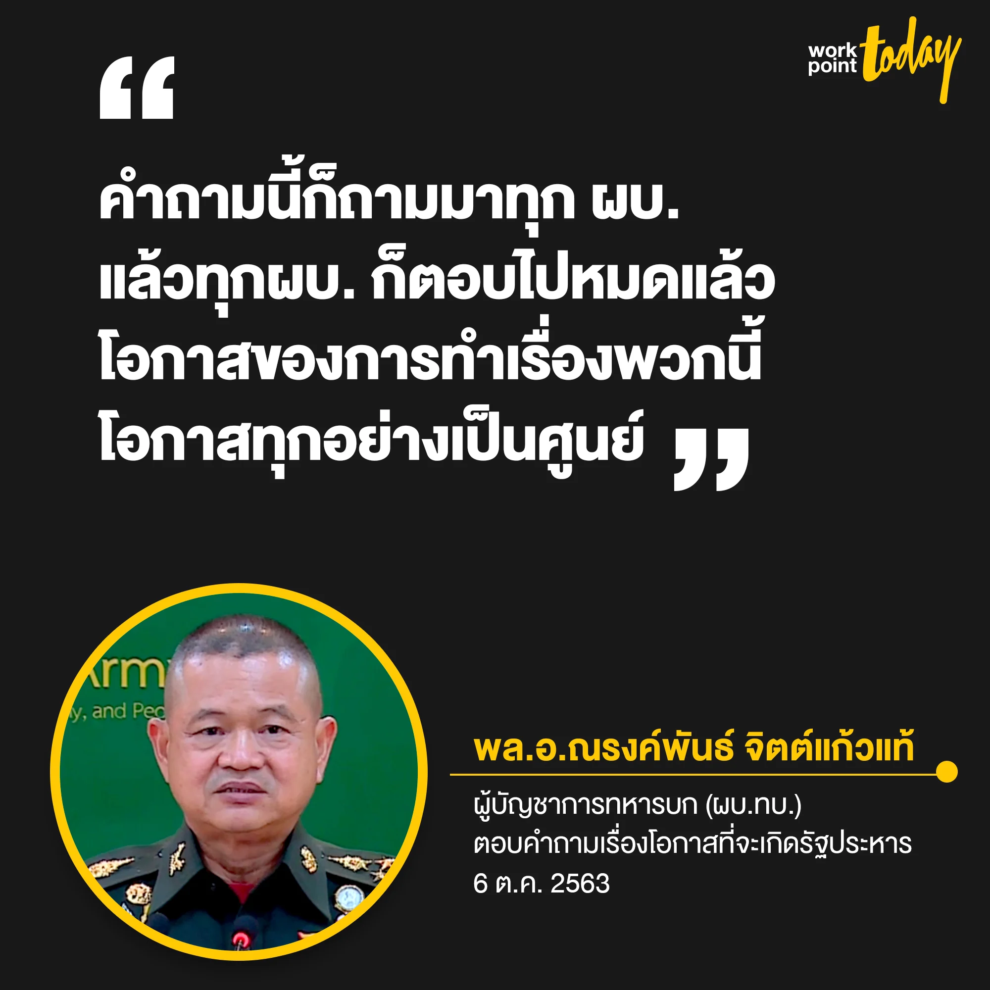ผบ.ทบ.ใหม่ แสดงจุดยืนทางการเมือง ชี้โอกาสเกิดรัฐประหารเป็นศูนย์ ลั่นเป็นข้าราชการประจำไม่ใช่ข้าราชการการเมือง ย้ำการเมืองต้องแก้ด้วยการเมือง