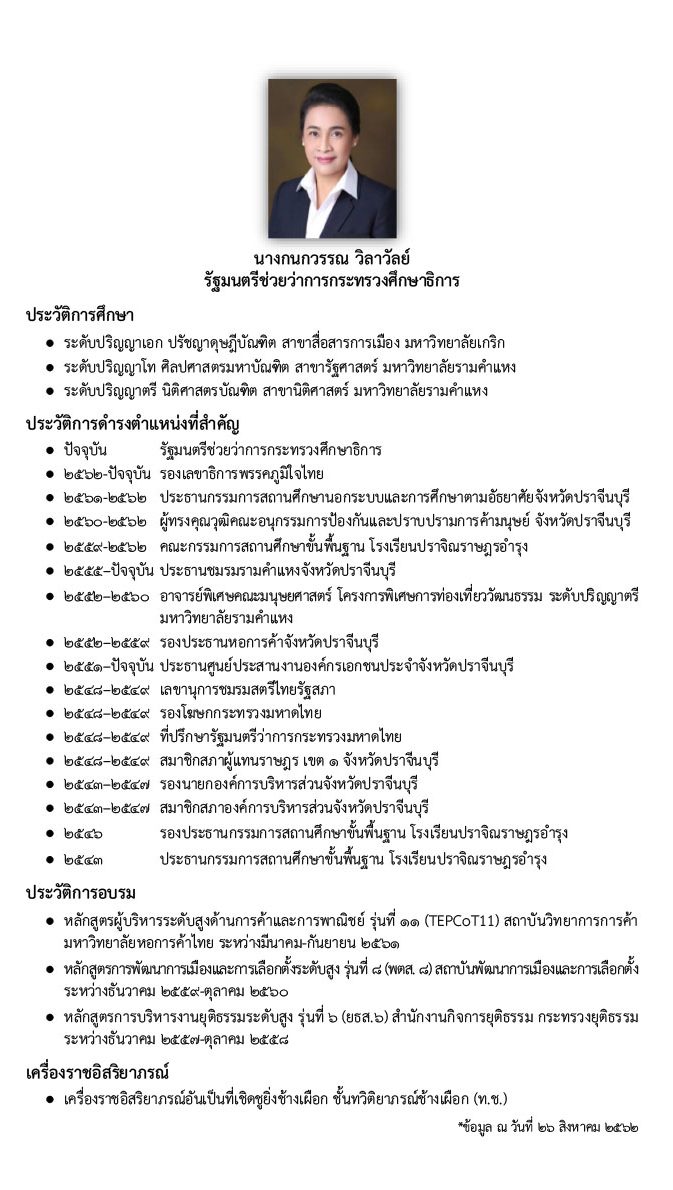 กนกวรรณ วิลาวัลย์ อดีต รมช.ศึกษาธิการ