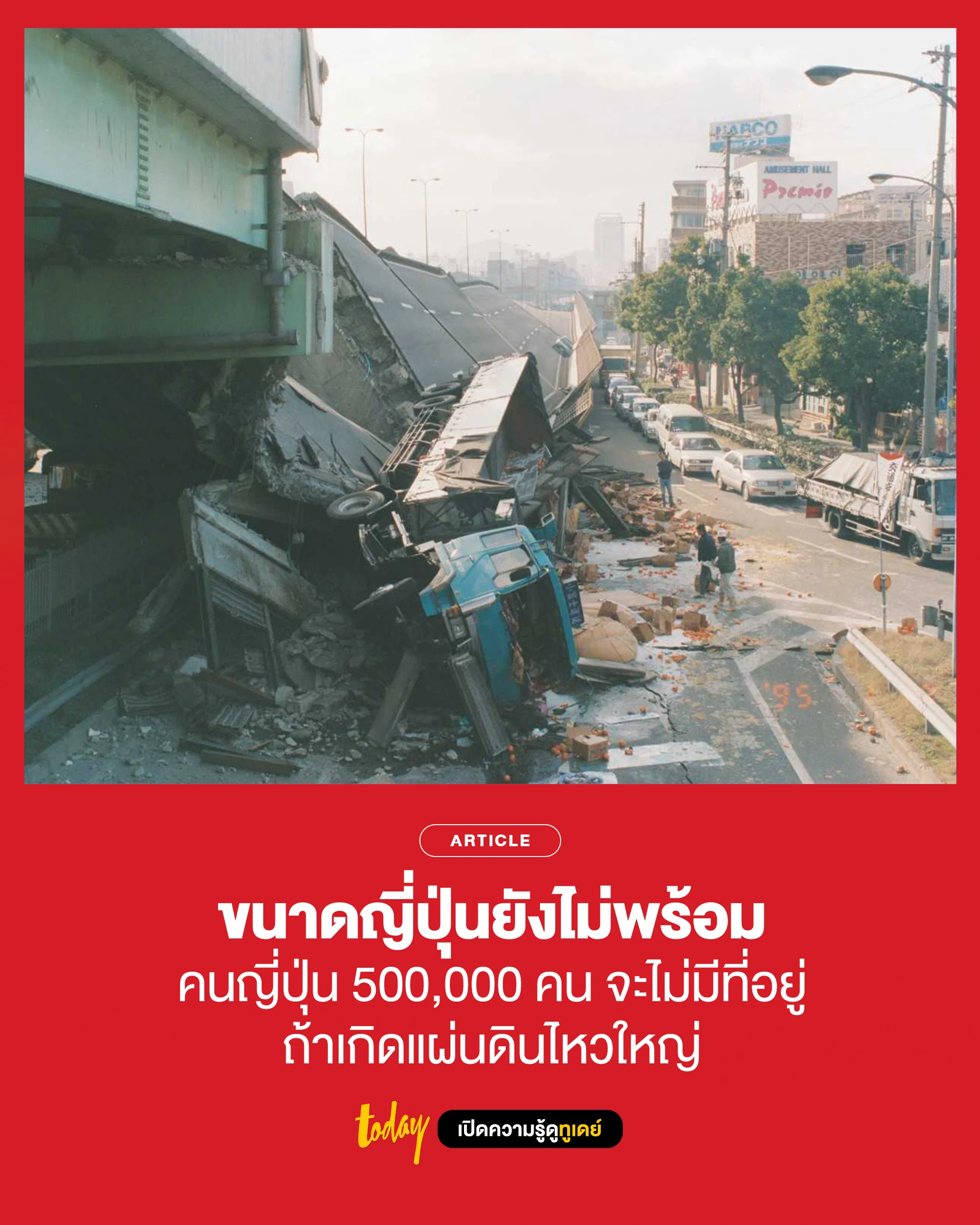 ผ่านไปแล้ว 3 ทศวรรษ ความเสี่ยงเกิดแผ่นดินไหวรุนแรงแบบนี้ยังคงมีอยู่ และสิ่งที่น่าตกใจมากกว่าก็คือ ประเทศอย่างญี่ปุ่น ซึ่งถูกมองว่าน่าจะมีความพร้อมในการรับมือภัยพิบัติใหญ่ อาจจะไม่มีที่พักพิงเพียงพอหากเกิดแผ่นดินไหวรุนแรงในอนาคต และจะทำให้มีคนญี่ปุ่นสูงถึง 500,000 คนไร้ที่อยู่อาศัย หากเกิดแผ่นดินไหวแบบเดียวกันในสถานที่เดียวกันกับเมื่อ 3 ทศวรรษที่แล้ว