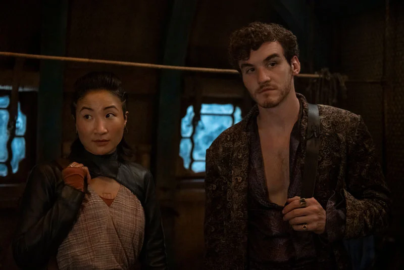 จะมีฉากฝึกประลองดาบระหว่างแรนด์และลานสองสามฉากที่เราถ่ายทำบนไหล่เขานอกเมืองเคปทาวน์ครับ โยชา สตราดอฟสกี (Josha Stradowski) กับผม และพระอาทิตย์ที่กำลังขึ้น ผมต้องใช้ดาบจริงที่หนักประมาณ 20 ปอนด์ ผมแทบจะทำอะไรไม่ได้เลยเพราะมันหนักมาก ส่วนเขาใช้ดาบของผม ดาบของลาน ผมค่อยๆ สอนเขาเรื่องการหายใจ จิตวิญญาณ แนวคิดเรื่องความสมดุลที่อยู่ในท่วงท่าเพลงดาบ (Kata) และเบื้องหลังการเป็นนักดาบ มีบางอย่างที่สวยงามมากๆ เกี่ยวกับความเรียบง่ายของมัน ผมบอกทุกคนว่ามันเป็น “ช่วงเวลามิสเตอร์มิยากิ (Mr. Miyagi moment)” ของผม เพราะว่าผมเป็นแฟนตัวยงของ The Karate Kid