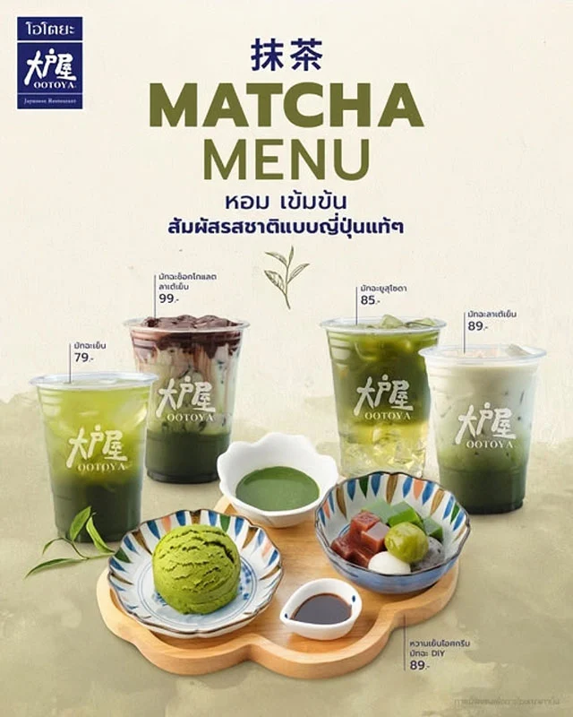 ร้านอาหารญี่ปุ่นพรีเมี่ยม สไตล์โฮมเมดที่นอกจากจะเด่นในเรื่องของอาหารญี่ปุ่นแล้วก็ยังมีขนมหวานที่อร่อยไม่แพ้กัน มี Matcha menu ให้เลือกหลากหลาย อาทิเช่น มัทฉะลาเต้เย็น หอมมัทฉะและนุ่มละมุนไปกับนมคุณภาพดี, มัทฉะช็อกโกแลตลาเต้เย็น สองความต่างที่ดื่มแล้วเข้ากันอย่างลงตัว, มัทฉะยูสุโซดา ที่จะเพิ่มความซ่าสดชื่นให้คุณไปกับยูสุหอม ๆ , มัทฉะเย็น สำหรับสายมัทฉะที่อยากได้รสชาติของมัทฉะเน้น ๆ นอกจากนี้ก็ยังมี หวานเย็นไอศกรีมมัทฉะ DIY ที่มีมัทฉะไอศกรีมลูกโต ทานพร้อมกับวุ้นมัทฉะ วุ้นถั่วแดง ดังโงะ และซอสมัทฉะสุดเข้มข้นให้ราดจุก ๆ กันไปเลย จบครบในร้านเดียวขนาดนี้ถูกใจ Matcha Lover แน่นอน ตามมาทานกันได้แล้วตั้งแต่วันนี้ที่ร้านโอโตยะ ทุกสาขา