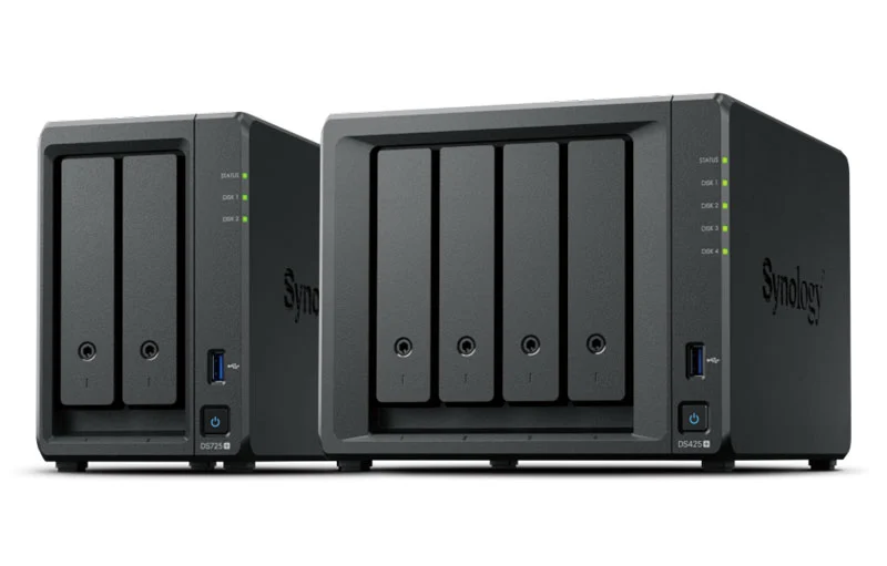 และ DiskStation รุ่นใหม่ DS725+ และ DS425+: ประสิทธิภาพสูงสำหรับบ้านและสำนักงานขนาดเล็ก Synology ได้เปิดตัวอุปกรณ์จัดเก็บข้อมูลเครือข่าย (NAS) แบบ 2-bay และ 4-bay รุ่นล่าสุด ได้แก่ DS725+ และ DS425+ ที่ออกแบบมาสำหรับบ้าน สำนักงานขนาดเล็ก และการใช้งานในสภาพแวดล้อมแบบเอดจ์ โดยทั้งสองรุ่นมาพร้อมการเชื่อมต่อ 2.5GbE ในตัว เพื่อความเร็วในการรับส่งข้อมูลที่สูงขึ้น และรองรับ M.2 NVMe SSD เพื่อประสิทธิภาพการแคชหรือการใช้งานแบบ all-flash ที่รวดเร็วเป็นพิเศษ DS725+ รองรับการขยายไดรฟ์สูงสุด 140TB ผ่านยูนิต DX525 ขณะที่ DS425+ จัดเก็บได้สูงสุด 80TB แบบคงที่