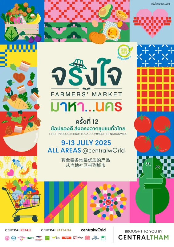 เตรียมพบกับงานใหญ่แห่งปีที่ทุกคนตั้งตารอ “จริงใจ มาหา…นคร” ครั้งที่ 12 ช้อปของดี ส่งตรงจากชุมชนทั่วไทย จัดโดย กลุ่มเซ็นทรัล นำโดย เซ็นทรัล รีเทล และ เซ็นทรัลพัฒนา ร่วมกับโครงการ “เซ็นทรัล ทำ” โครงการด้านความยั่งยืนของกลุ่มเซ็นทรัล มหกรรมที่รวบรวมสินค้ามาจัดแสดงและจำหน่ายโดยเกษตรกรและชุมชนตัวจริง พร้อมเสิร์ฟประสบการณ์ช้อป ชิม แชร์ รวมไว้ในงานเดียว ในธีม “จริงใจกลางกรุง From Roots to Radiance” พาเสน่ห์ความจริงใจของชาวบ้าน พืชผักตามฤดูกาล ของกินพื้นบ้านและภูมิปัญญาท้องถิ่นมาเล่าในรูปแบบที่โมเดิร์น สนุก และสดใส สร้าง “มหานครของความจริงใจ” อย่างยั่งยืน ทั่วพื้นที่ศูนย์การค้าเซ็นทรัลเวิลด์