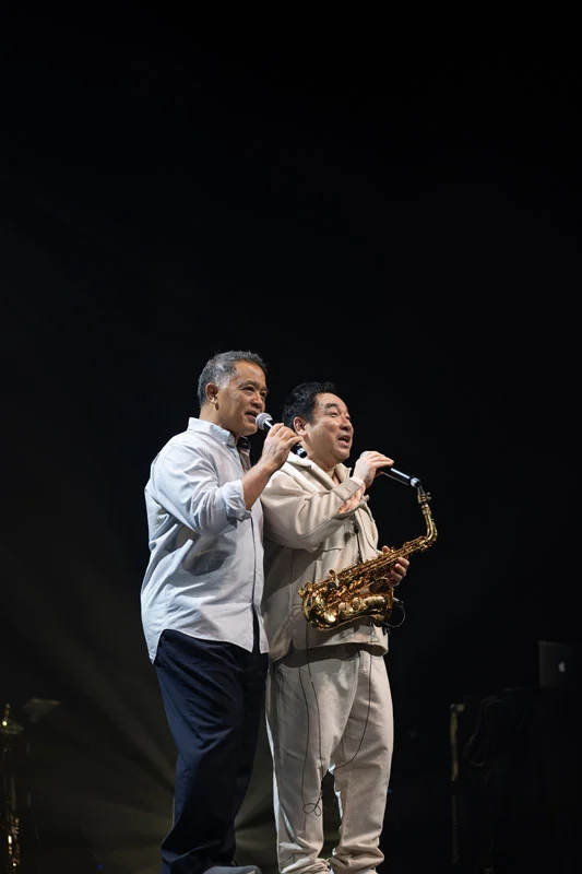 ทันทีที่ไฟในโรงละครค่อยๆ หรี่ลง และเสียงดนตรีชุดแรกเริ่มบรรเลงจากบทเพลงเปิดตัวด้วย “ขอมอบบทเพลง” ของ “ป้อม ออโต้บาห์น” ที่เปิดเวทีด้วยความเรียบง่ายและจริงใจไปจนถึงเสียงแซ็กโซโฟนของ “โก้ มิสเตอร์แซกแมน” ใน “รักเธอขึ้นใจ” และ “ภาวนา” ที่สะกดทั้งโรงละครให้เงียบสงบราวกับทุกคนอยากหยุดเวลาฟังให้ยาวที่สุด ความละมุนและไหลลื่นของโชว์ดำเนินต่อไปอย่างไม่มีสะดุด การสลับร้องของทั้งสองศิลปินในเพลงอย่าง “ลืม” และ “รอรัก” กลายเป็นโมเมนต์ที่อบอุ่นและเป็นธรรมชาติ
