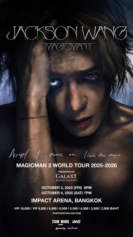 เรียกว่าทุกแพลตฟอร์มโดนยึดพื้นที่ไปด้วย MAGICMAN! และกลายเป็นวาระแห่งด้อมทันทีที่ศิลปินระดับโลก “แจ็คสัน หวัง” (JACKSON WANG) ประกาศเปิดเวิลด์ทัวร์ใหม่ โดยเลือกประเทศไทยเป็นจุดสตาร์ทที่แรก! งาน “MAGICMAN 2 WORLD TOUR 2025-2026 in Bangkok Presented by Galaxy Resorts Thailand” กับ 2 รอบการแสดงสุดยิ่งใหญ่กว่าครั้งก่อน ในวันศุกร์ที่ 3 ตุลาคม 2568 เวลา 20:00 น. และวันเสาร์ที่ 4 ตุลาคม 2568 เวลา 19:00 น. ณ อิมแพ็ค อารีน่า เมืองทองธานี โดยผู้จัด iMe Thailand พร้อมทุ่มไม่อั้นเพื่อความอลังการทุกโชว์