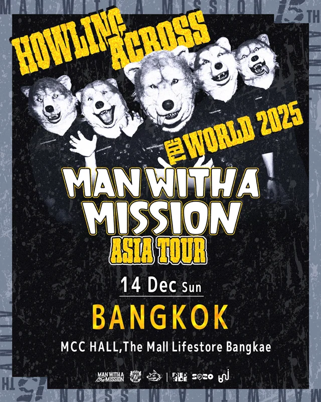 วงร็อกชื่อดังจากญี่ปุ่น MAN WITH A MISSION เตรียมระเบิดความมันส์ในคอนเสิร์ต “HOWLING ACROSS THE WORLD 2025 – ASIA TOUR” ที่กรุงเทพฯ ในวันอาทิตย์ที่ 14 ธันวาคม 2568 เวลา 17:00 น. ณ MCC HALL, The Mall Lifestore บางแค โดยมี FriedRice Entertainment, SOZO และ BNJ Entertainment ร่วมจัดงาน ซึ่งครั้งนี้ถือเป็นโชว์ปิดท้ายการทัวร์เอเชียของพวกเขา