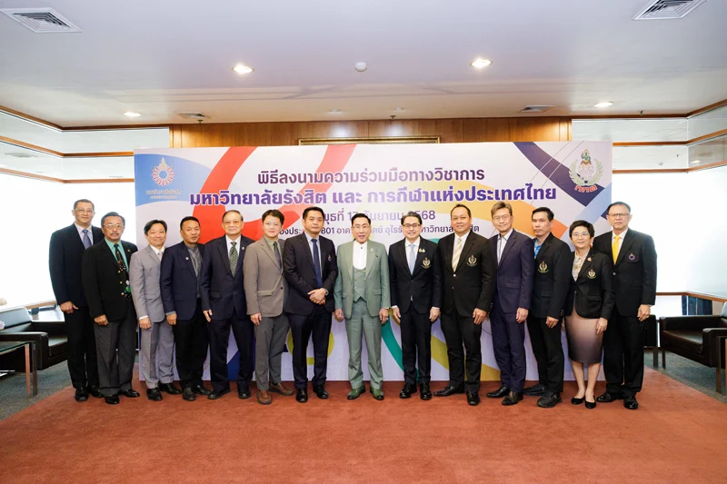 โดยเมื่อวันพุธที่ 17 กันยายน 2568 นายก้องศักด ยอดมณี ผู้ว่าการการกีฬาแห่งประเทศไทย ได้นำคณะผู้บริหาร ประกอบด้วย รองผู้ว่าการฝ่ายส่งเสริมกีฬา รองผู้ว่าการฝ่ายกีฬาเป็นเลิศและวิทยาศาสตร์การกีฬา รองผู้ว่าการฝ่ายยุทธศาสตร์และเทคโนโลยีสารสนเทศ ผู้อำนวยการฝ่ายวิทยาศาสตร์การกีฬา ผู้อำนวยการสำนักผู้ว่าการ และ ผู้อำนวยการฝ่ายวิศวกรรมกีฬา มาลงนามในความร่วมมือกับ ดร.อาทิตย์ อุไรรัตน์ อธิการบดีมหาวิทยาลัยรังสิต พร้อมด้วยรองอธิการบดีที่รับผิดชอบได้แก่ รองอธิการบดีฝ่ายวิชาการ รองอธิการบดีฝ่ายการแพทย์และวิทยาศาสตร์สุขภาพ รองอธิการบดีฝ่ายกิจการนักศึกษา คณบดีคณะกายภาพบำบัดและเวชศาสตร์การกีฬา คณบดีวิทยาลัยวิศวกรรมชีวการแพทย์ และผู้อำนวยการสถาบันกีฬา