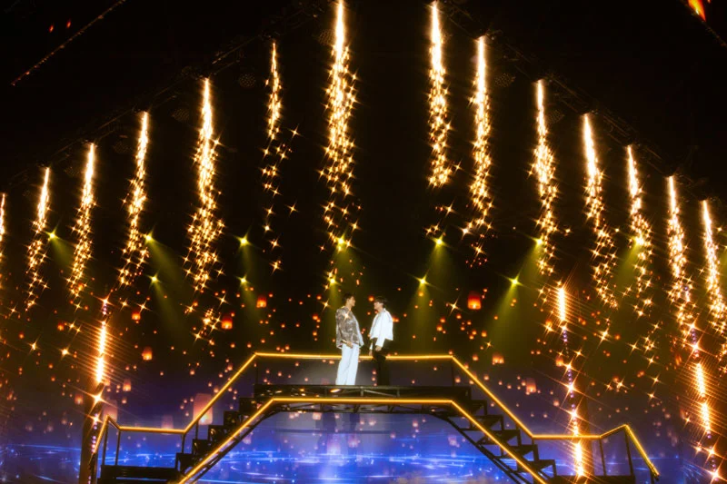 บรรยากาศภายในงานเต็มไปด้วยความคึกคักตั้งแต่เริ่ม แสง สี เสียง และโปรดักชั่นสุดอลังการที่ถูกออกแบบมาอย่างลงตัวเพราะเชื่อมโยงแฟนๆ เข้าสู่โลกของ “จอส-กวิน” อย่างสมบูรณ์แบบ พร้อมเปิดตัวสองหนุ่มด้วยโชว์สุดเท่ที่มาเติมพลังความสุขให้ทุกคนผ่านเสียงดนตรีและบทเพลงที่มีความหมายมากมาย อาทิ “Superstar, 3 มิติ และ “รู้แค่ผมรักคุณก็พอ” แล้วส่งต่อความผูกพันที่ร้อยเรื่องราวของพวกเขาเข้าด้วยกัน โดย “จอส” มาในเพลง “ภวังค์” ส่วน “กวิน” มากับเพลง “Don’t Look Back in Anger”