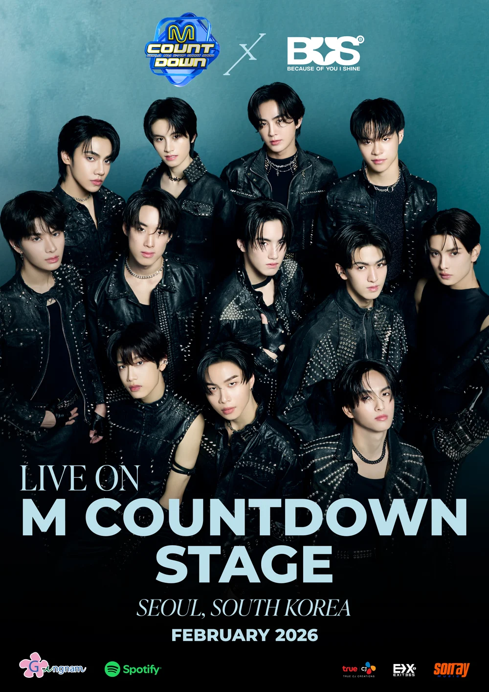 แฟน ๆ เตรียมเฮ! SONRAY MUSIC ประกาศข่าวดี BUS because of you i shine เตรียมสร้างประวัติศาสตร์หน้าใหม่ให้กับวงการเพลงไทย กับการบินลัดฟ้าไปแสดงบนสเตจรายการเพลงระดับตำนานของเกาหลีใต้อย่าง M COUNTDOWN ในเดือนกุมภาพันธ์ 2569