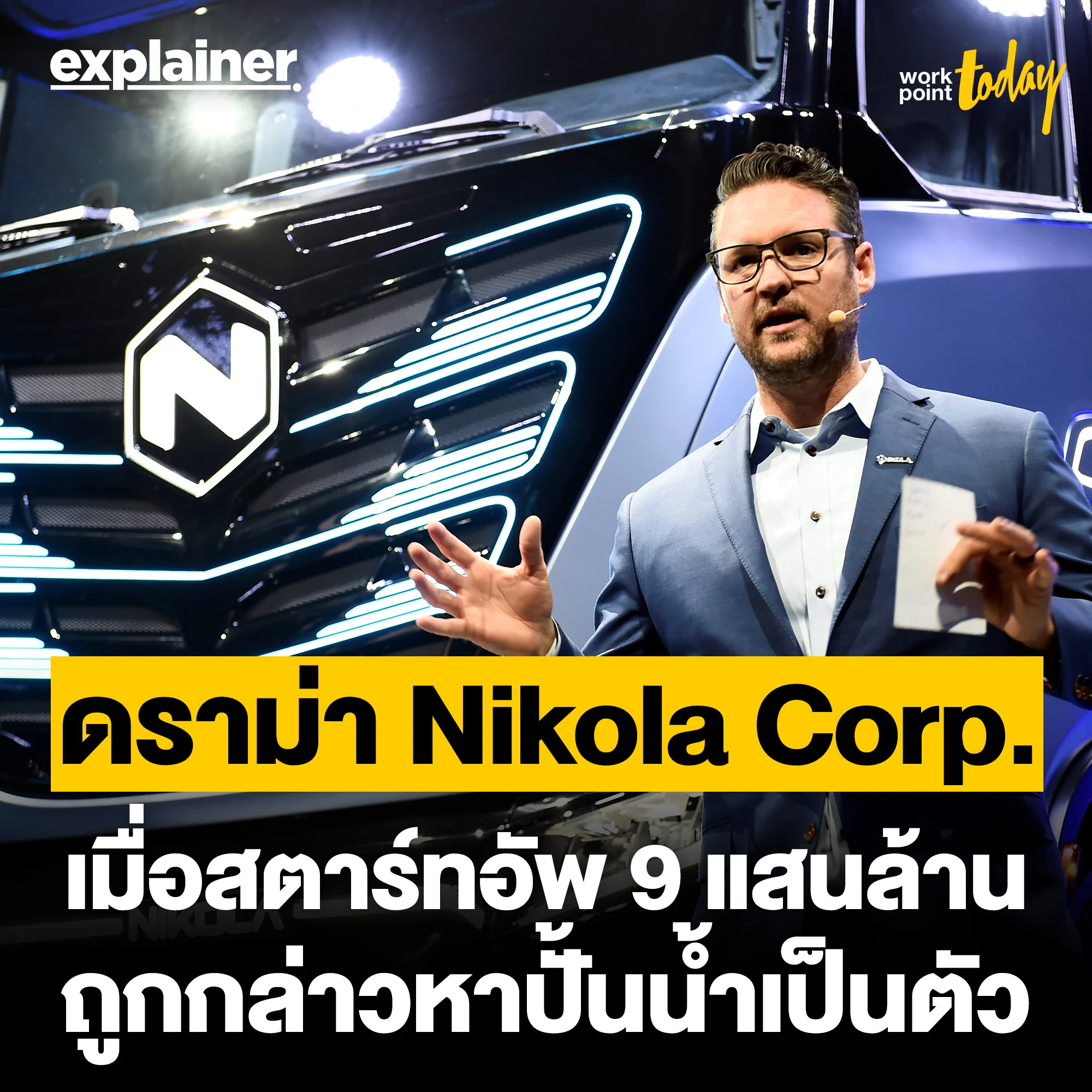 ในแวดวงธุรกิจสตาร์ทอัพตอนนี้ กำลังฮือฮาถึงสิ่งที่เกิดขึ้นกับบริษัทนิโคลา (Nikola Corp.) สตาร์ทอัพมูลค่ากว่า 9 แสนล้านบาท เจ้าของไอเดียพัฒนารถบรรทุกพลังงานไฟฟ้าและไฮโดรเจน ซึ่งถูกกล่าวหาว่า สร้างเรื่องการพัฒนาทั้งหมดเพื่อหลอกเงินจากนักลงทุน จนมีหลายบริษัทยักษ์ใหญ่หลงเชื่อ