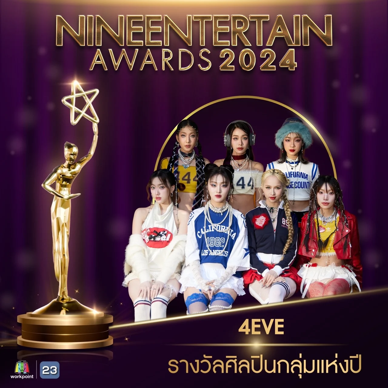 ขอแสดงความยินดีกับ 2 รางวัลคุณภาพ ‘คุณปัญญา นิรันดร์กุล’ กับรางวัล “บุคคลเบื้องหลังแห่งปี” และ ‘4EVE’ รางวัล “ศิลปินกลุ่มแห่งปี” ในงานประกาศรางวัล NINEENTERTAIN AWARDS 2024