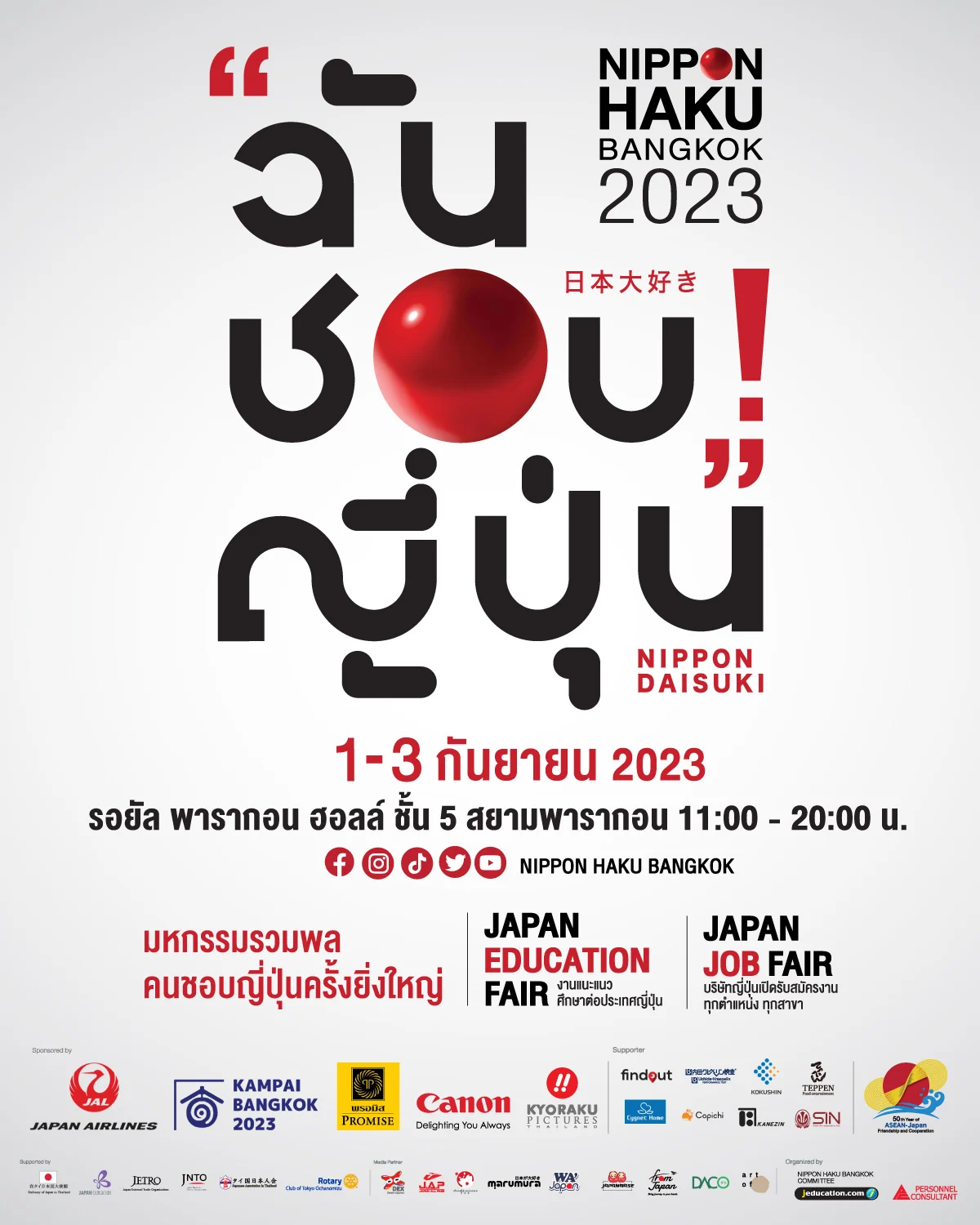 เจเอ็ดดูเคชั่น สถาบันสอนภาษาและศูนย์แนะแนวศึกษาต่อประเทศญี่ปุ่น เตรียมจัดงานมหกรรมเพื่อคนรักญี่ปุ่นแบบครบทุกเรื่องครั้งใหญ่ที่สุดในประเทศไทย กับงาน “NIPPON HAKU BANGKOK 2023” ในธีม “NIPPON DAISUKI!” #ตะโกนออกมาว่าฉันชอบญี่ปุ่น เตรียมมาปล่อยใจจอยๆ กับทุกเรื่องของความเป็นญี่ปุ่นที่รวบตึงแบบครบทุกมิติมาไว้ในงานเดียว พร้อมให้คนรักญี่ปุ่นได้อินกันจนฟินกับทุกกิจกรรมและความบันเทิงภายในงาน และสัมผัสกับความเป็นญี่ปุ่นอย่างแท้จริง ระหว่างวันที่ 1 – 3 กันยายน 2566 ณ ชั้น 5 สยามพารากอน