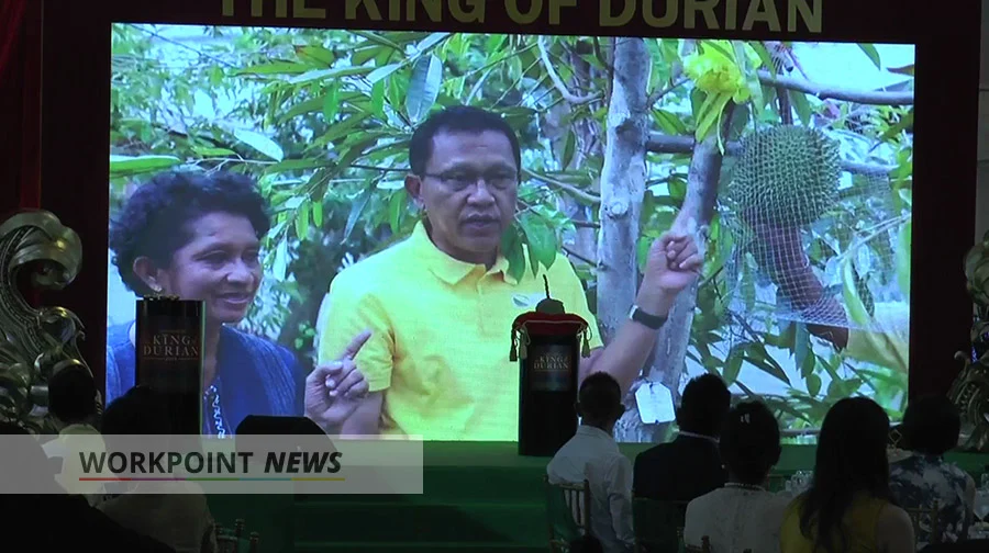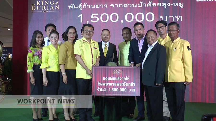 ลูกที่ 5 กบแม่เฒ่าจากสวนทุเรียนนนท์พิณพา ผู้ชนะประมูลในราคา 280,000 บาทคือนายวัชระ และนางวราภรณ์ วจีไกรลาศ มอบให้ รพ.ชลประทาน