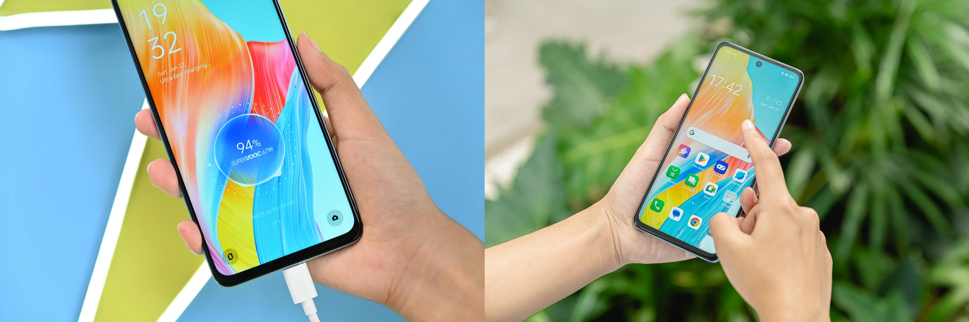 OPPO A98 5G มอบการใช้งานที่ก้าวไปอีกขั้นด้วยประสิทธิภาพที่ได้รับการอัปเกรด ด้วยการมาพร้อมการชาร์จที่ไวที่สุดใน A Series อย่าง 67W SUPERVOOC ชาร์จเพียงแค่ 5 นาที สามารถดู YouTube ต่อได้ถึง 2.5 ชั่วโมง! เต็มอิ่มกับความบันเทิงได้ยาวๆ ไม่มีช็อตฟีล และใช้งานลื่นไหลเป็นพิเศษด้วยอัปเกรดสเปคมาพร้อม ดับเบิ้ล ROM 256GB และ ดับเบิ้ล RAM 8GB เพิ่มได้อีก 8GB ตอบโจทย์ทุกไลฟ์สไตล์ความสนุกด้วยหน้าจออัปเกรดขนาดใหญ่ 6.72 นิ้วใช้งานไหลลื่นด้วย 120Hz refresh rate ฟีลจอยทุกโมเมนต์