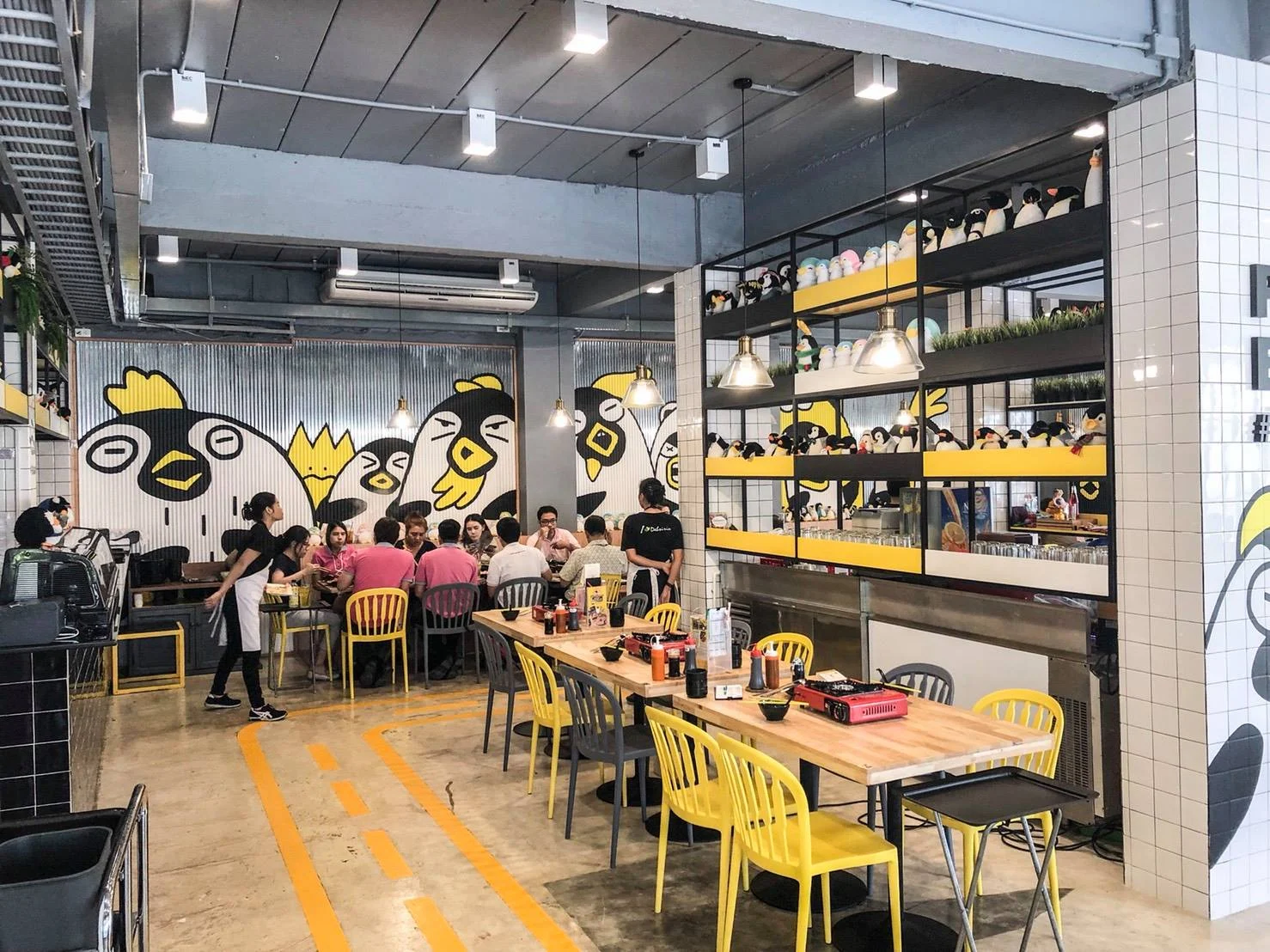 ต่อและพี่ชายเริ่มตั้งแต่ Research ว่าในตลาดร้านชาบูเขาทำอะไรกันบ้าง เพื่อทำแบรนด์ตัวเองให้แตกต่าง เช่น ร้านของพวกเขาจะต้องเป็นชื่อที่จำง่าย คนไทยพูดแล้วเข้าปาก ต่างจากร้านอาหารญี่ปุ่นอื่นๆ ถ้าร้านอื่นใช้โลโก้สีแดงและตกแต่งร้านด้วยไม้ราคาแพงเพื่อสื่อถึงความญี่ปุ่น พวกเขาก็จะใช้สีเหลืองและตกแต่งร้านสไตล์ลอฟต์แทน ทั้งหมดนั้นจึงทำให้ได้ชื่อร้านที่เรียบง่ายและมีสไตล์ที่จำไม่ลืมอย่าง Penguin Eat Shabu