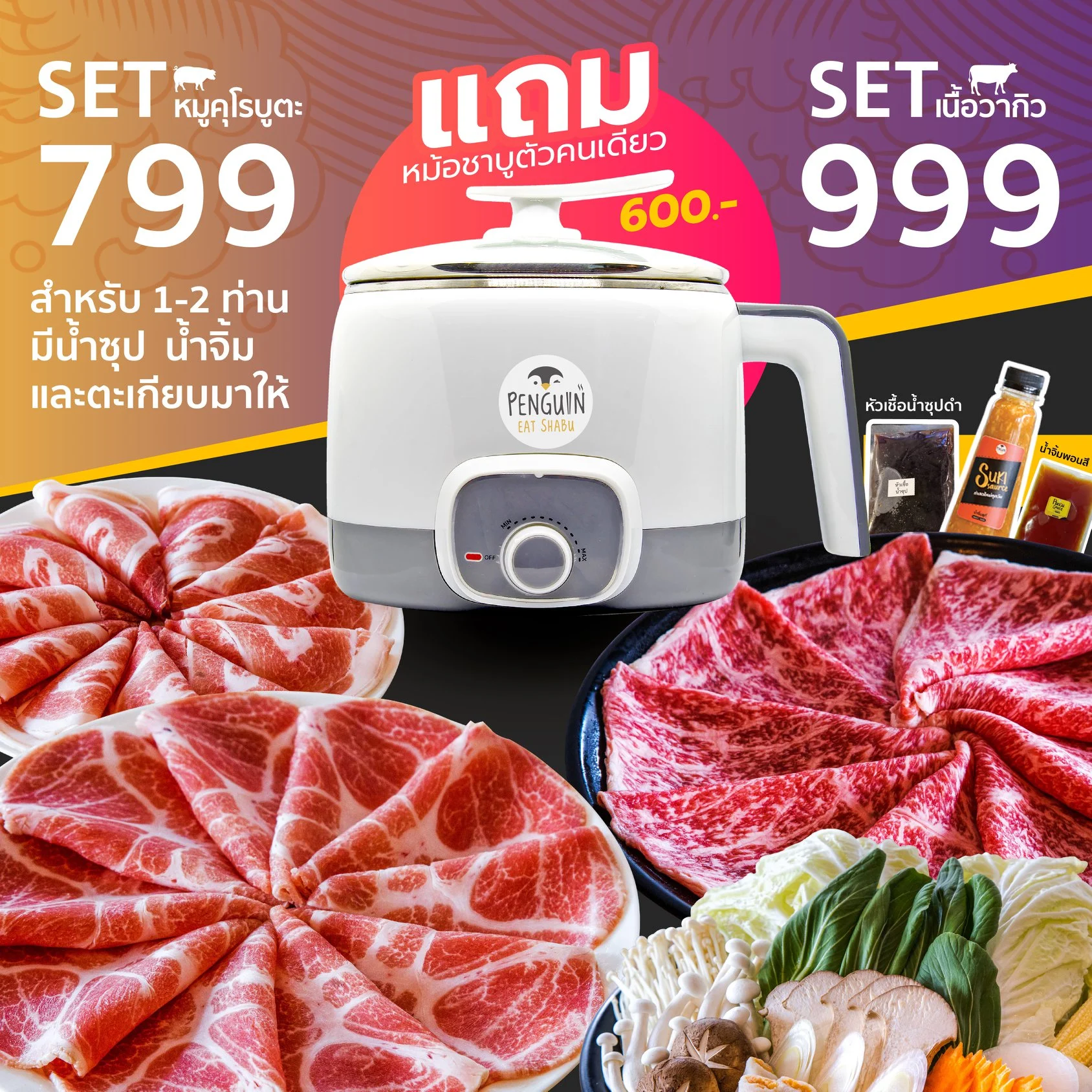 ในส่วนของแคมเปญส่งเสริมการตลาด ผู้ก่อตั้ง Penguin Eat Shabu เล่าว่า ที่ผ่านมาไม่ได้เน้นทำการตลาดตามกระแส และไม่เน้นการลดราคา แต่จะมาในรูปแบบของการให้ลูกค้าจ่ายราคาเดิมแล้วได้อะไรมากขึ้น เพราะร้านบุปเฟต์ไม่ได้มีกำไรเยอะ ถ้าหักกำไรออกอาจทำให้ธุรกิจไปไม่รอด ประกอบกับเคยทำเดลิเวอรีแบบคืนหม้อแล้วไม่เวิร์ค เลยไม่ทำต่อ แต่ในวันที่มีโควิด ทำให้ความคิดหลายอย่างเปลี่ยนไป