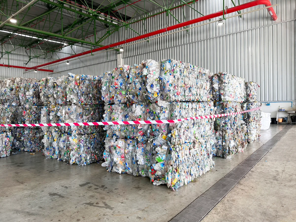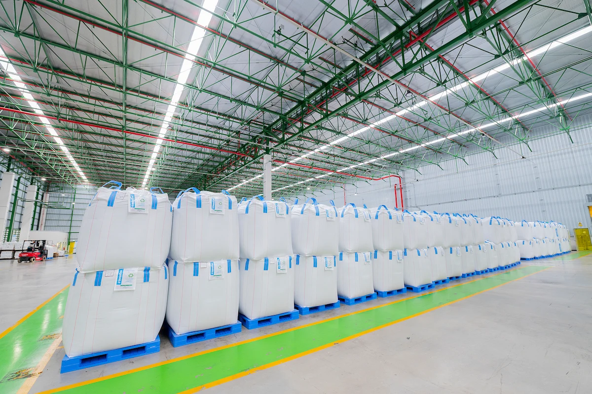 ภายในโรงงานของเอ็นวิคโคที่ อ.บ้านฉาง จ.ระยอง จุดแรกที่เราเห็นคือจุดรับขยะที่มาจากผู้บริโภค ไม่รับขยะจากอุตสาหกรรม รวมถึงขยะที่รับก็รับเฉพาะจากในประเทศเท่านั้น