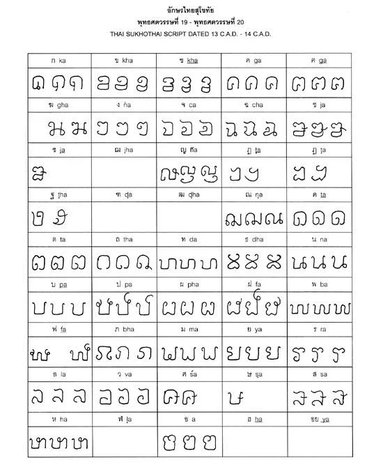 รูปแบบอักษรไทยสุโขทัย พุทธศตวรรษที่ ๑๙ – ๒๐ (ภาพจากศูนย์มานุษยวิทยาสิรินธร)
