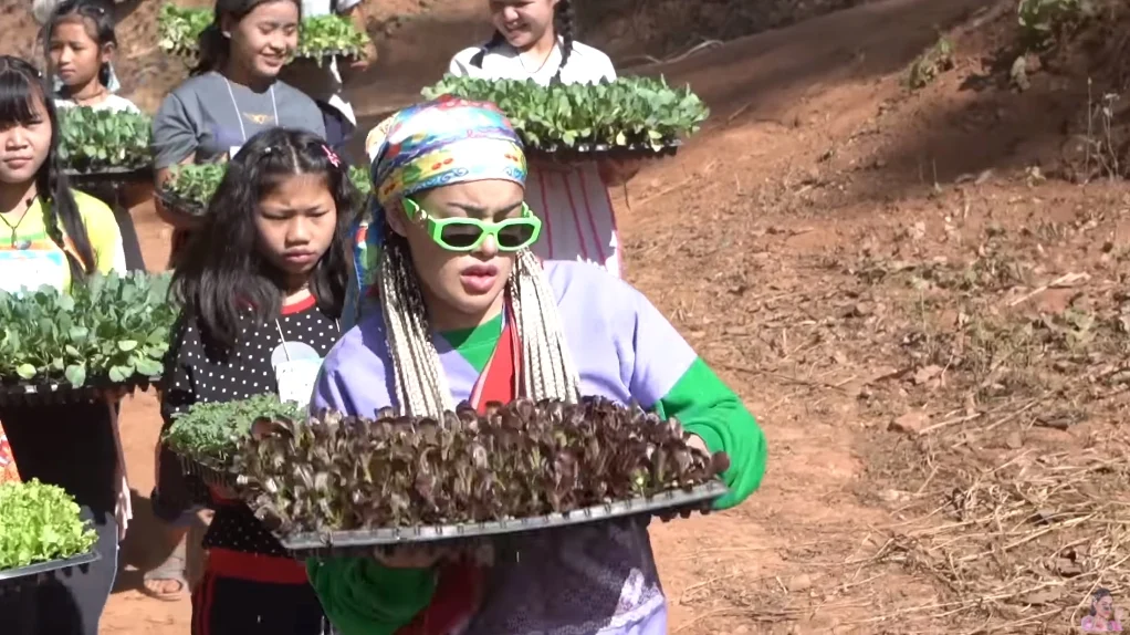 งานนี้ พิมรี่พาย จึงตัดสินใจทุ่มเงินกว่า 5.5 แสนบาท นำแผงโซลาร์เซลขึ้นมาติดตั้งที่หมู่บ้าน พร้อมขนทีวีจอยักษ์ มามอบเป็นของขวัญให้แก่เด็กๆบ้านแม่เกิบ นอกจากนี้ยังมอบโรงปลูกผัก และเครื่องอุปโภคและบริโภค ให้เด็กๆ และชาวบ้านได้ใช้ประโยชน์ต่อไป