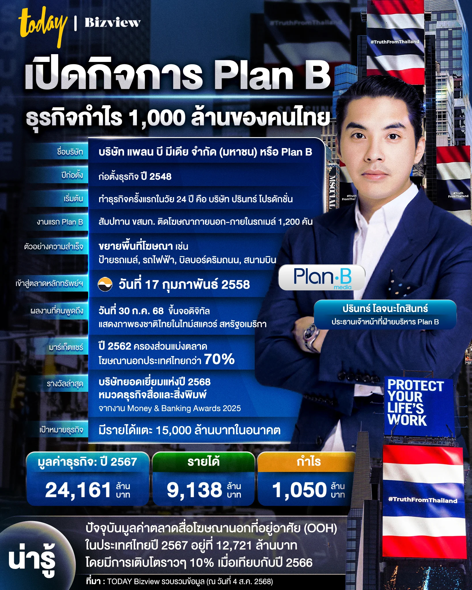 TODAY Bizview อยากพาไปรู้จักกับ Plan B บริษัทของคนไทยที่ตอนนี้มีรายได้เกือบ ‘หมื่นล้าน‘ แล้วทั้งยังฟาดกำไรไปกว่า 1,000 ล้านบาทในปี 2567