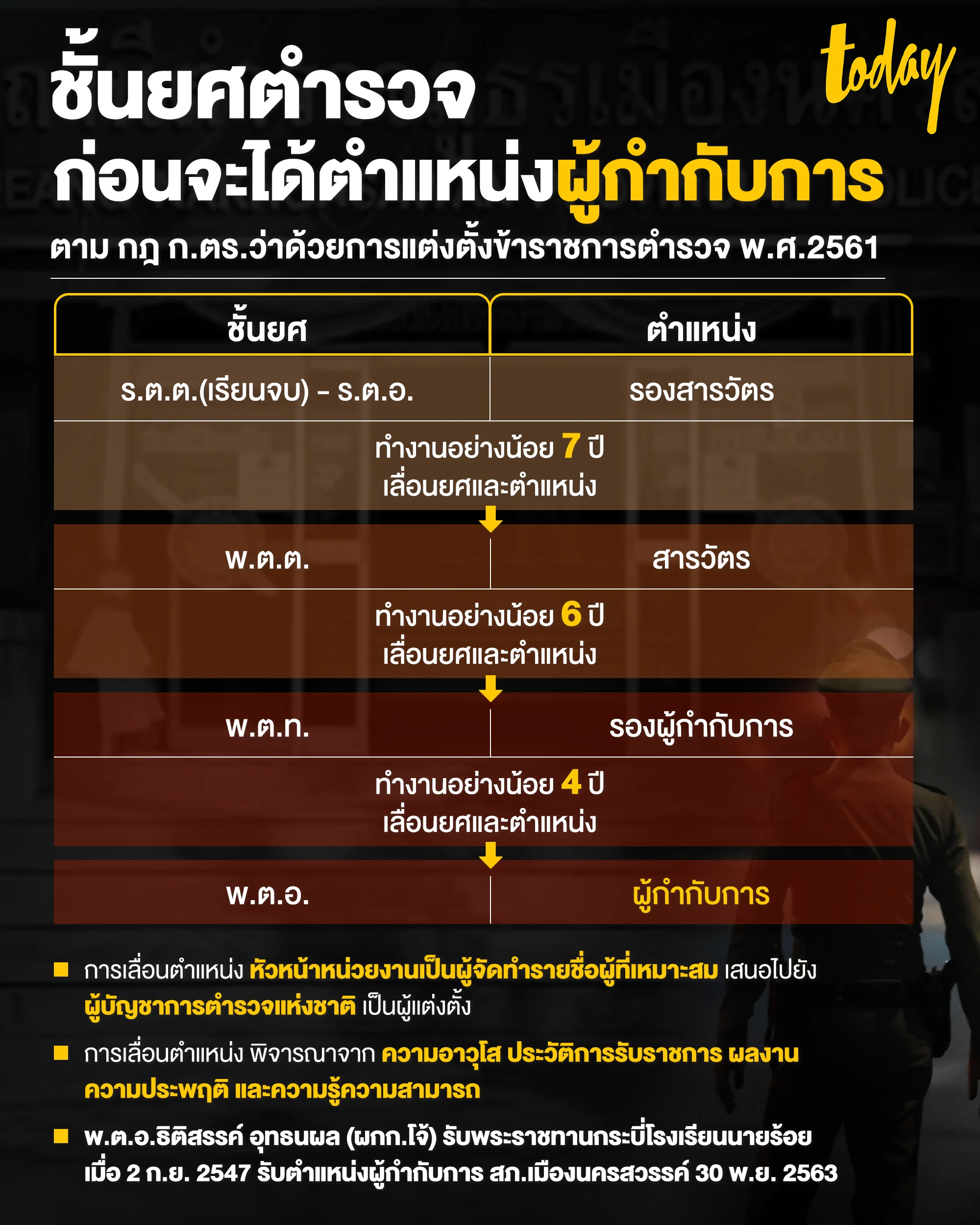 เปิดชั้นยศตำรวจก่อนจะได้ตำแหน่ง ‘ผู้กำกับการ’ ตามระเบียบ ก.ตร. พ.ศ.2561 พบใช้เวลาเร็วสุด 17 ปี อดีตตำรวจเผยมี “ข้อยกเว้น” ที่ทำให้บางคนขึ้นเร็ว