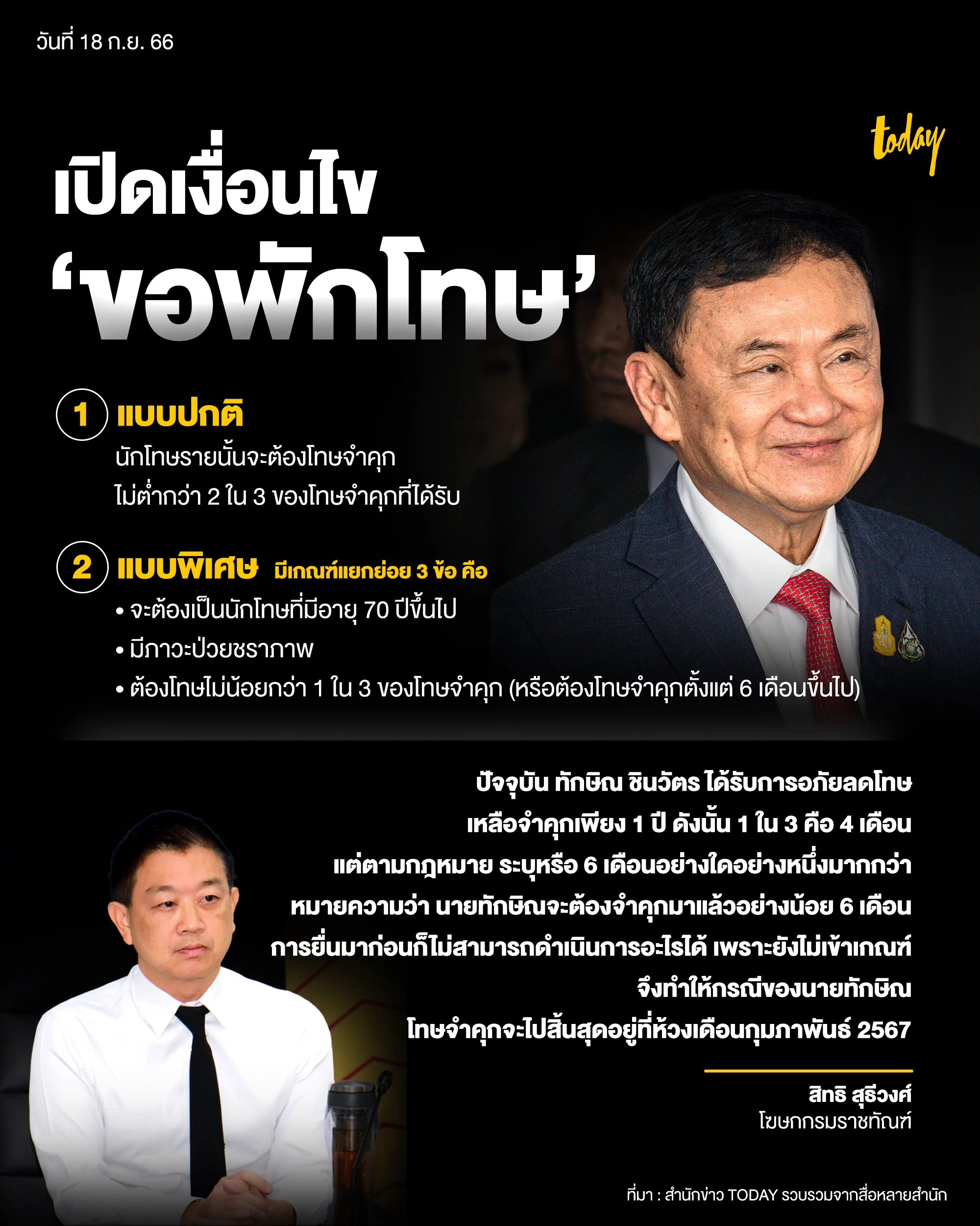 เปิดเงื่อนไข ‘ขอพักโทษ’ สำนักข่าว TODAY สรุปจากคำให้สัมภาษณ์ของนายสิทธิ สุธีวงศ์ โฆษกกรมราชทัณฑ์ จากสื่อหลายสำนัก