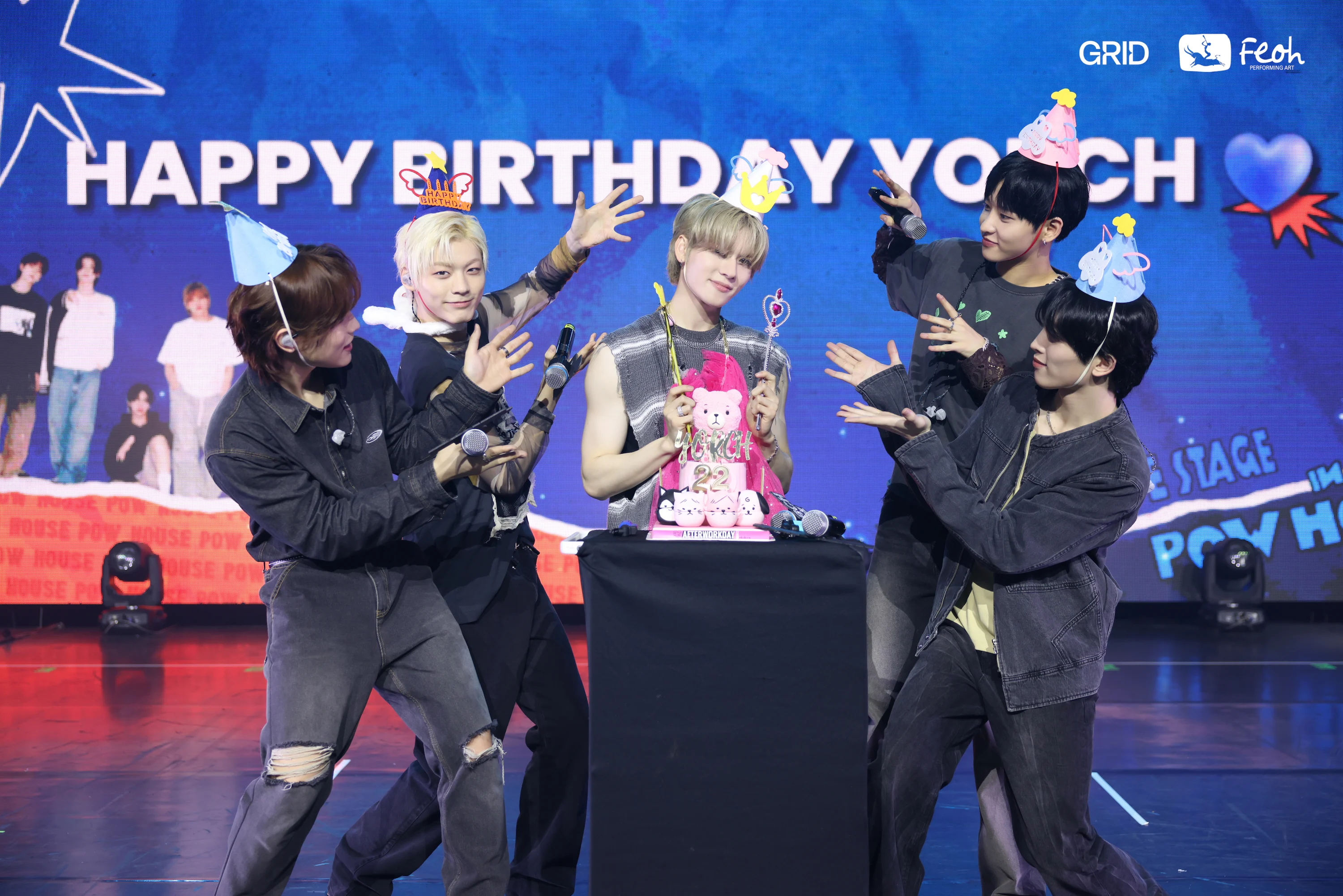 ไม่เพียงแค่เมมเบอร์เกาหลีที่ถูกภาษาไทยเล่นงาน ไทยแท้อย่าง ยอร์ช เองยังลำบาก จนเพื่อนๆ ขอแกงพี่ใหญ่ให้รับบทลงโทษสักนิดด้วยผ้าปิดตา เพื่อจะทำเซอร์ไพรส์เค้กวันเกิดให้ยอร์ชนั่นเอง เมมเบอร์พาวและพาวเวอร์ร่วมกันร้องเพลงแฮปปี้เบิร์ธเดย์ โดยมีลีดเดอร์ จองบิน รับหน้าที่ตัวแทนบอกกล่าวความรู้สึก “เป็นการฉลองวันเกิดของพี่ยอร์ชครั้งแรกหลังจากที่พวกเรารวมตัวกัน รู้สึกดีที่ได้ฉลองวันเกิดที่บ้านเกิดของพี่ยอร์ชเอง วันคล้ายวันเกิดของพี่ในปีถัดๆ ไปพวกเราก็อยากจะอยู่ร่วมกับพี่นะ” ด้าน พี่ยอร์ช เจ้าของวันเกิดก็เผยถึงความประทับใจเช่นกัน “เป็นครั้งแรกที่มีเค้กวันเกิดบนเวที วันเกิดทุกๆ ปีมีความหมายสำหรับผมมากๆ ขอบคุณทุกคนมากๆ ที่มางานวันเกิดขนาดใหญ่ในวันนี้นะครับ ขอบคุณทุกคนมากๆ ครับ”