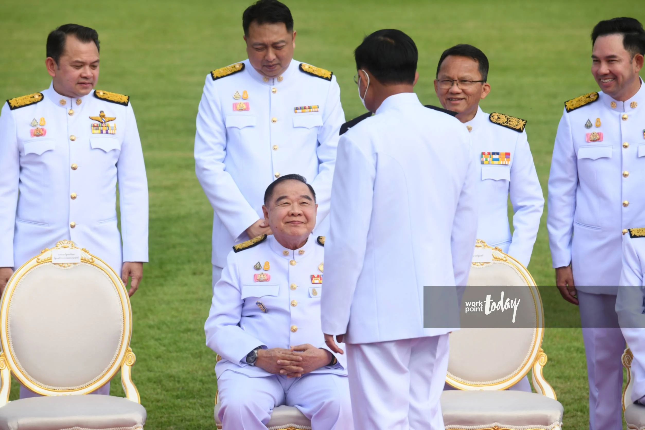 ในภาพ พล.อ.ประยุทธ์ เดินเข้าไปทักทายกับ พล.อ.ประวิตร วงษ์สุวรรณ รองนายกรัฐมนตรีและหัวหน้าพรรคพลังประชารัฐ ซึ่งด้านหลังของ พล.อ.ประวิตร (นับจากซ้ายมือไปขวา) คือ นายณัฏฐพล ทีปสุวรรณ รมว.ศึกษาธิการ, นายสุชาติ ชมกลิ่น รมว.แรงงาน (คนใหม่), นายสมศักดิ์ เทพสุทิน รมว.ยุติธรรม และนายอิทธิพล คุณปลื้ม รมว.วัฒนธรรม ซึ่งทั้ง 4 คน เป็นกรรมการบริหารพรรคพลังประชารัฐ