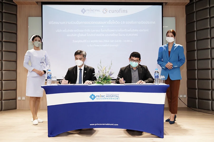 เมื่อวันที่ 12 พ.ย. 64 บริษัท พริ้นซิเพิล แคปิตอล จำกัด (มหาชน) ผู้นำธุรกิจบริหารจัดการโรงพยาบาลและธุรกิจสุขภาพ ในนามเครือพริ้นซิเพิล เฮลท์แคร์ ลงนามความร่วมมือกับบริษัท ยูโรฟินส์ (Eurofins) บริษัทผู้นำด้านทดสอบและวัดผลทางห้องปฏิบัติการที่มีชื่อเสียงในระดับโลก ร่วมมือในการตรวจหาเชื้อโควิด-19 ในกลุ่มนักท่องเที่ยวต่างชาติ ลูกเรือของสายการบินในกลุ่มสมาชิกสมาคมการขนส่งทางอากาศระหว่างประเทศ (IATA) และกลุ่มนักกีฬาต่างชาติที่จะเข้ามาแข่งขันรายการต่างๆในประเทศไทย คาดจำนวนตรวจโควิด-19 จะเพิ่มขึ้น 50% นับตั้งแต่ไตรมาส 4 ปี 2564 นี้ รองรับการเปิดประเทศนับตั้งแต่ 1 พ.ย. 2564 เป็นต้นไป